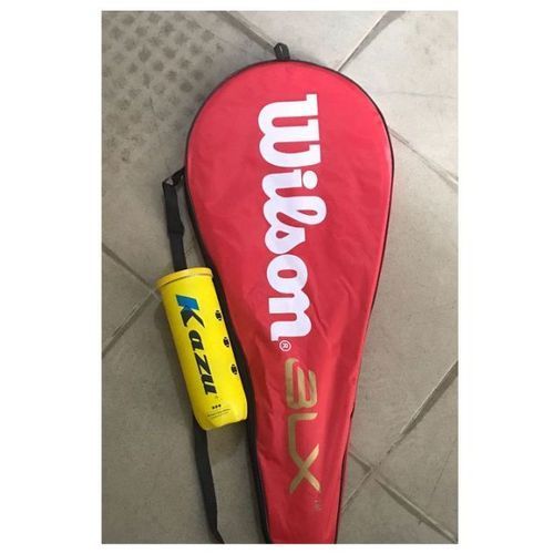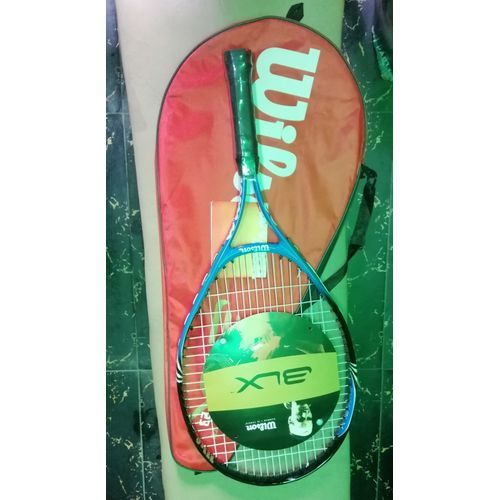 A racket or racquet is a sports implement consisting of a handled frame with an open hoop across which a network of strings or catgut is stretched tightly. It is used for striking a ball or shuttlecock in games such as squash, tennis, racquetball, rackets, badminton and padel .