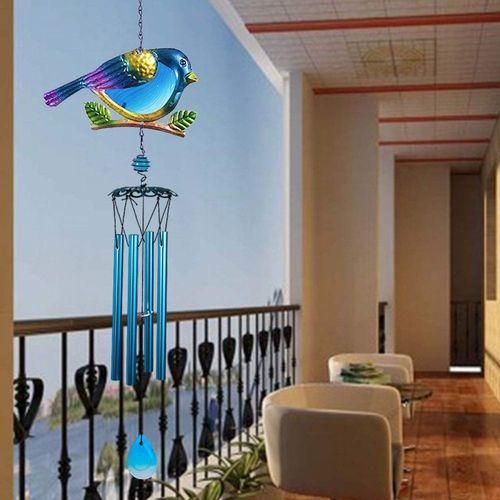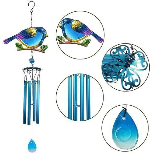 [Unique design] wind chimes, hand-made, with 4 Blue and durable aluminum tubes. A blue bird. 1 openwork flower shape frame. 1 crystal pendant. From the ring to the bottom hanger, the entire wind chime is 30 inches. Each metal tube has its own unique tone in the event of a collision. Enjoy great music and soothe your body and mind. Enjoy the peace melody it plays. The sound is soft, clear and easy.