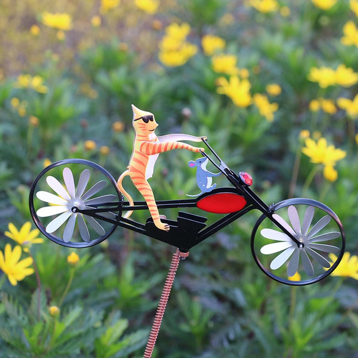 Our metal wind spinner for garden art, the perfect addition to liven up your outdoor space. this wind spinner is designed to add a touch of charm and create a warm ambience on your patio, lawn, or garden. crafted with high-quality materials, it is built to withstand the elements and ensure long-lasting durability in your garden. the unique design features adorable animals pedaling on windy days, bringing joy and vitality to your outdoor oasis. whether you choose to place it on your porch, patio, or backyard, this wind spinner will effortlessly enhance any setting with its captivating presence. it also makes an ideal gift for loved ones who enjoy spending time in their garden patios. don't miss out on this charming and durable wind spinner that will infuse life and beauty into your outdoor space.
