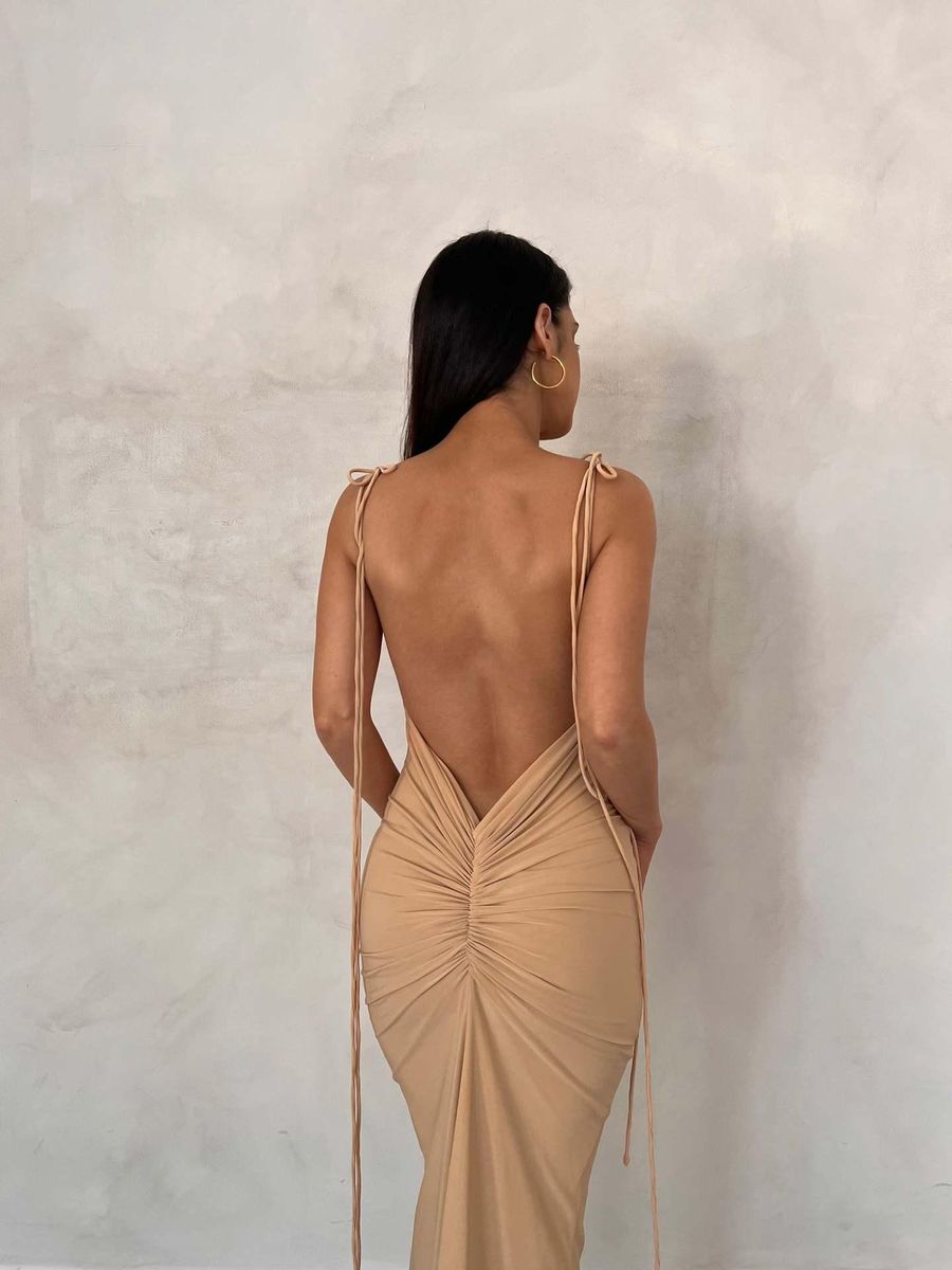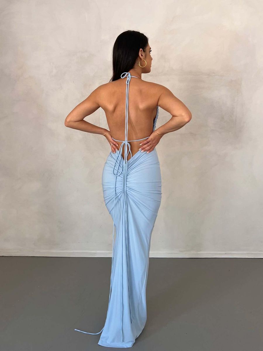 Buy Wind Summer New Fashion Sexy Open Back Lace up Temperament Long Dress with Bra Hanging Neck Dress in Nigeria