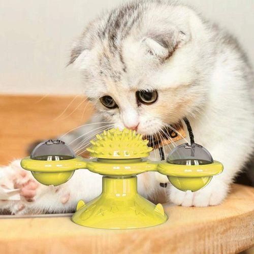 Convenience - Cat turns windmill is easy to attach to any surface with adhesive.And it is rotatable for your cat to play with it, have fun and be healthy.