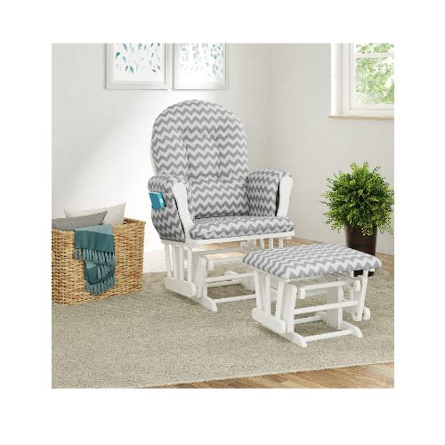 Buy Windsor Glider And Ottoman White Finish With Gray Chevron Cushions in Nigeria