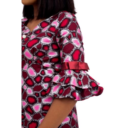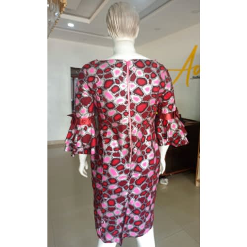 Buy Wine Ankara Dress With Gathered Sleeve Attachment in Nigeria