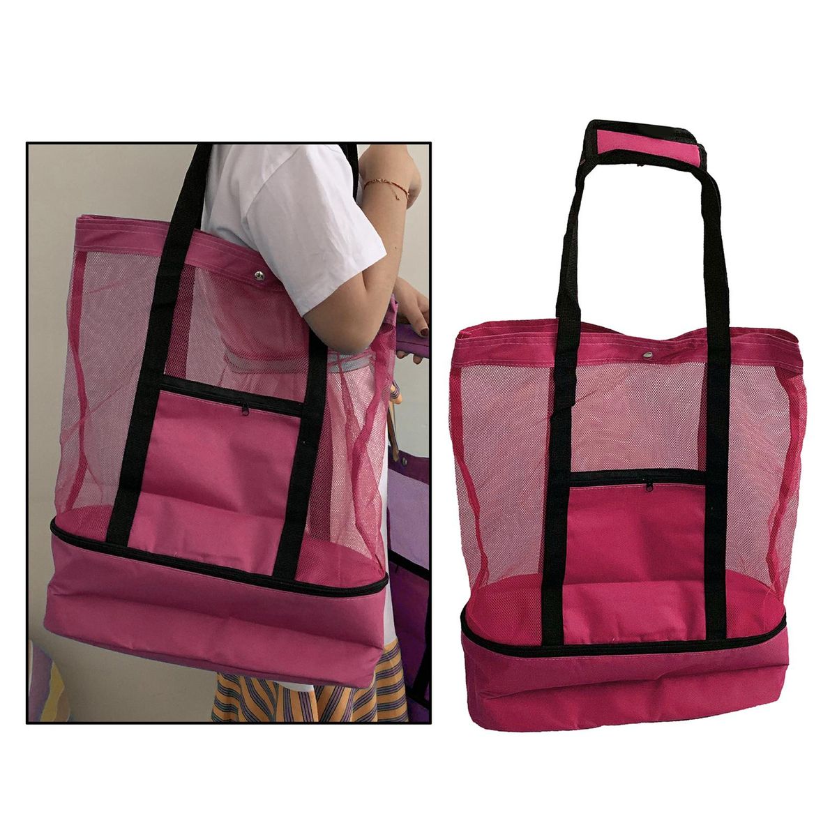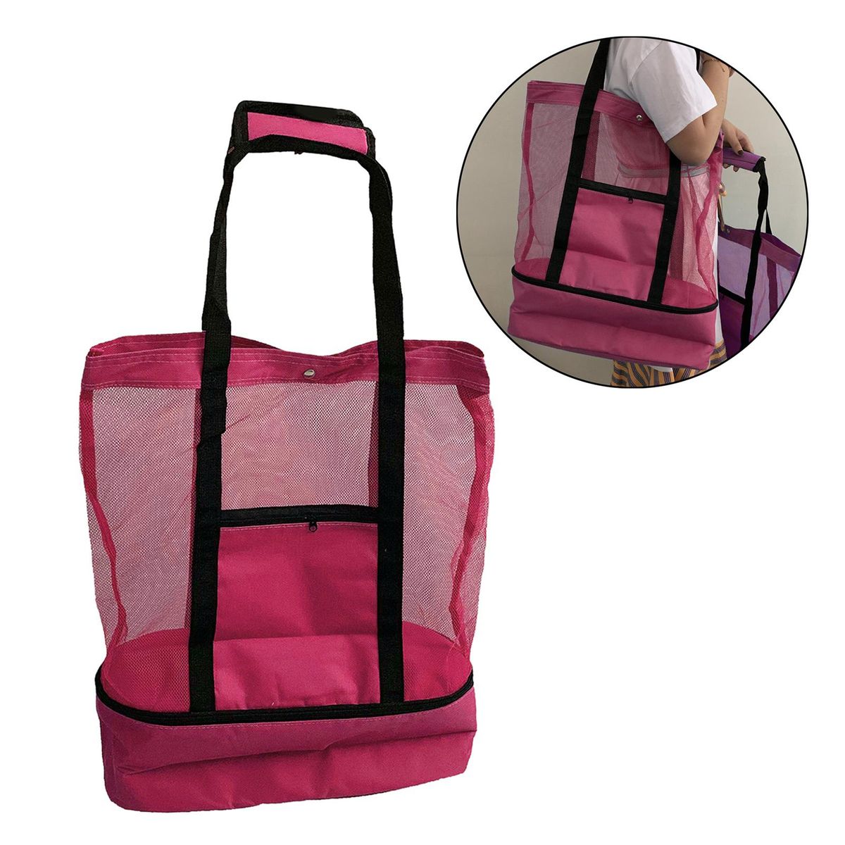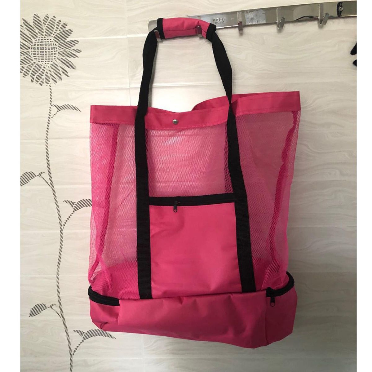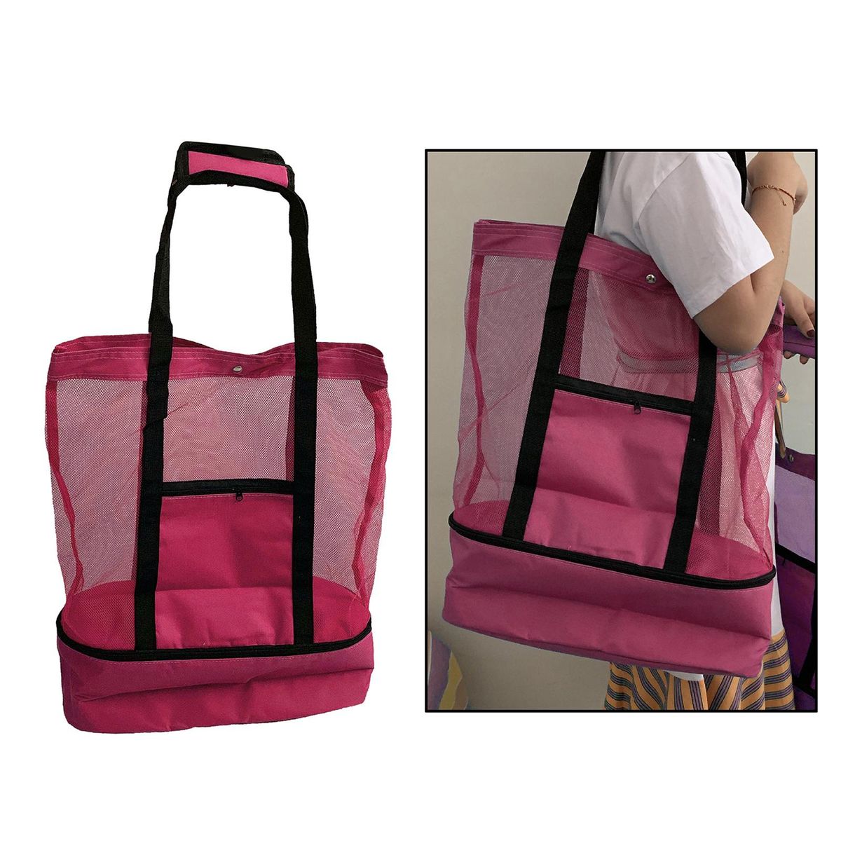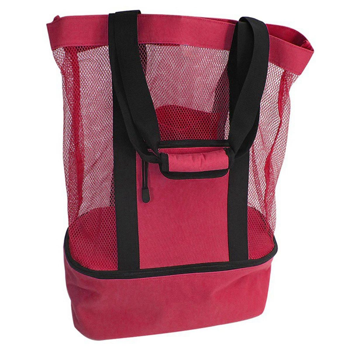 Enjoy the convenience of this fashionable, lightweight, canvas and mesh with an additional cooler bag segment with zipper.