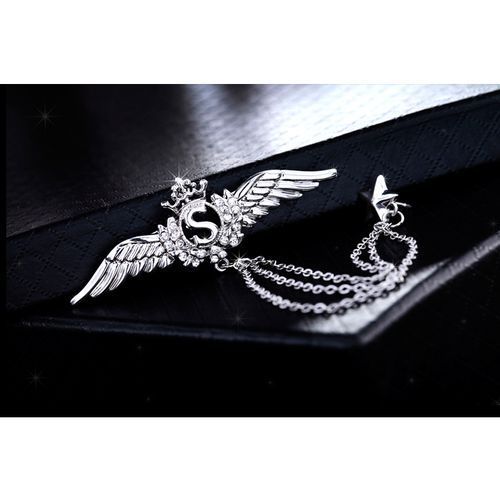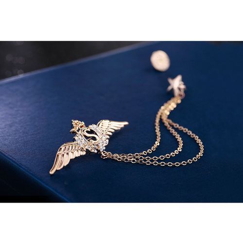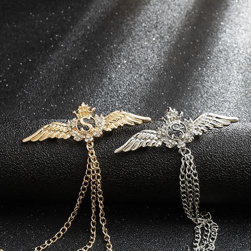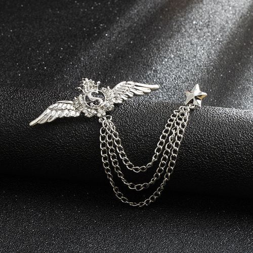 Wings set with diamonds five-pointed star pendant brooch Fashion clothing collar pin accessories