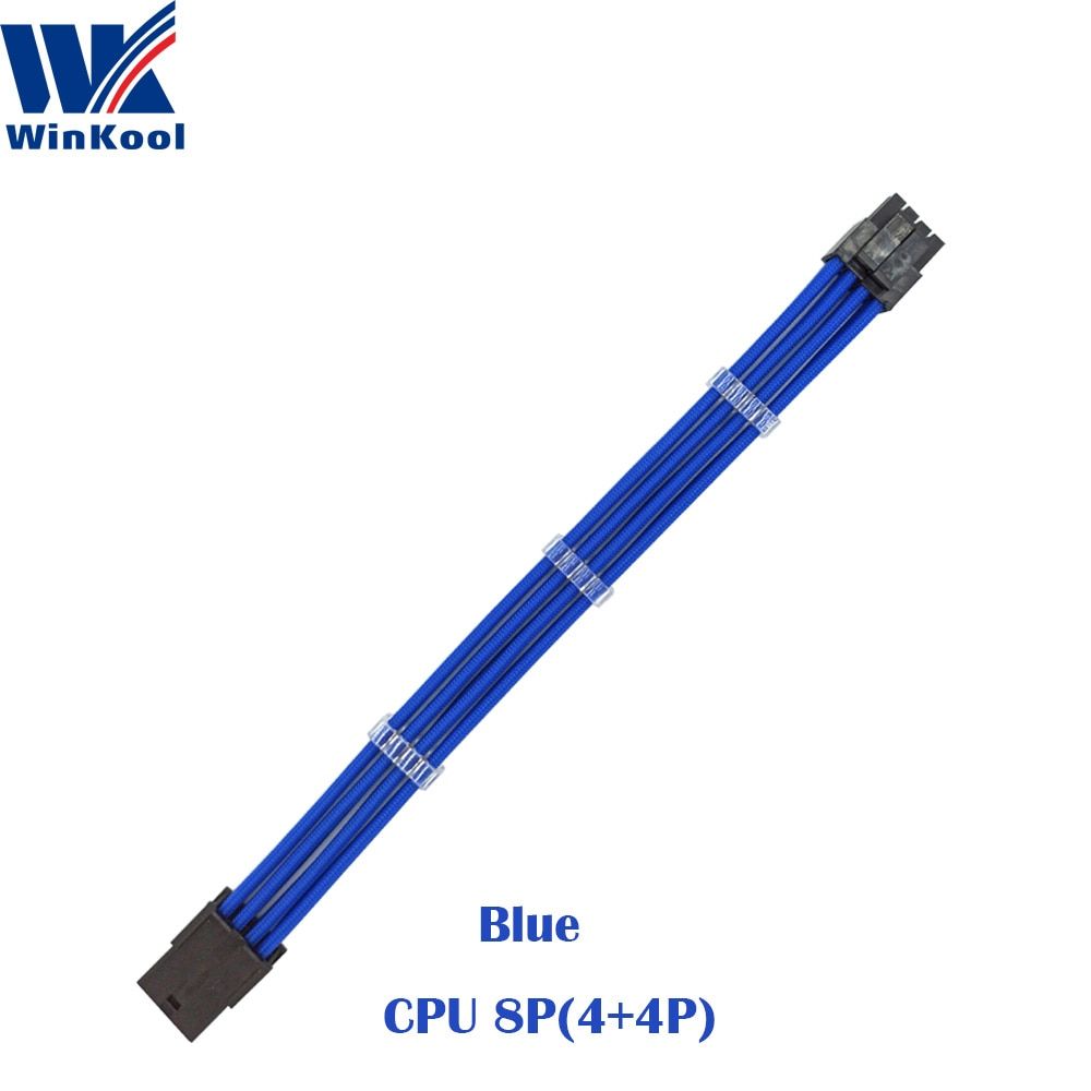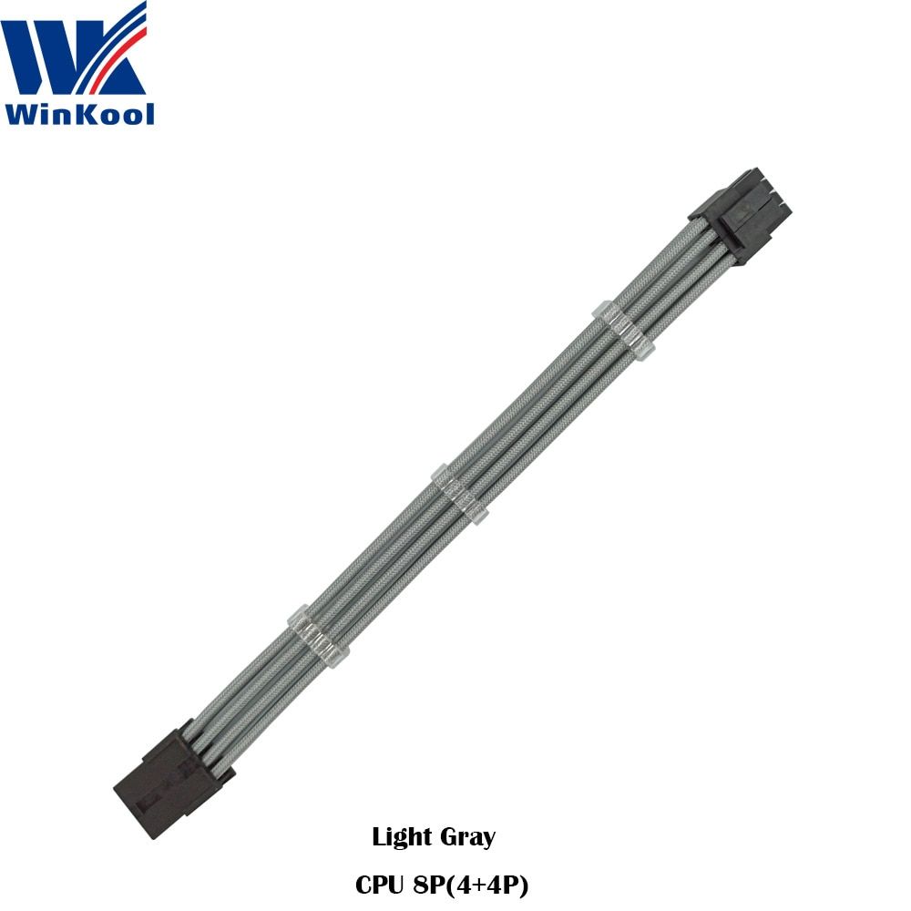 1X WinKool ATX EPS CPU 8PIN Female to Male 4+4Pin 18AWG PSU Sleeved Extension Power Cord / Cable with White Black Sleeving