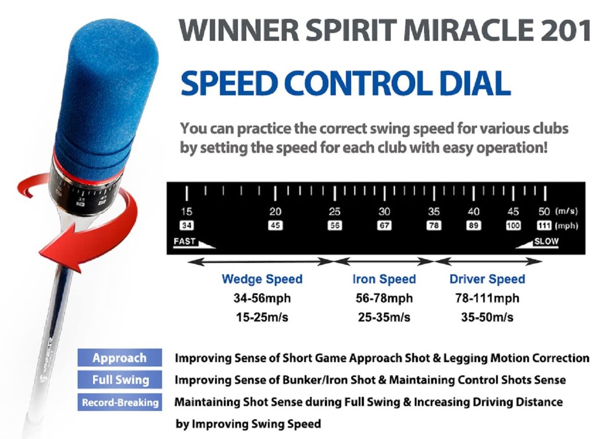 SPEED GAUGE AND MAGNETS - Miracle 201 has non-movable magnets in the handle which help you to control each club speed for the swing speed practice. Miracle 201 speed controller has its own system. It will make clicking sound only when swing speed goes over the speed gauge. These functions will help you to practice the perfect swing.