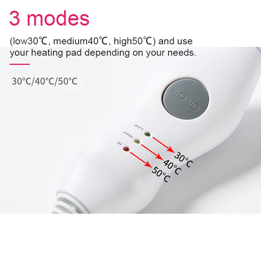 3 modes (low30℃, medium40℃, high50℃) and use your heating pad depending on your needs.