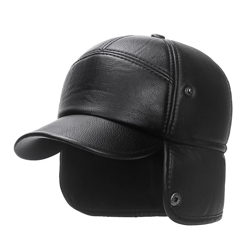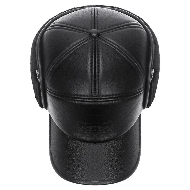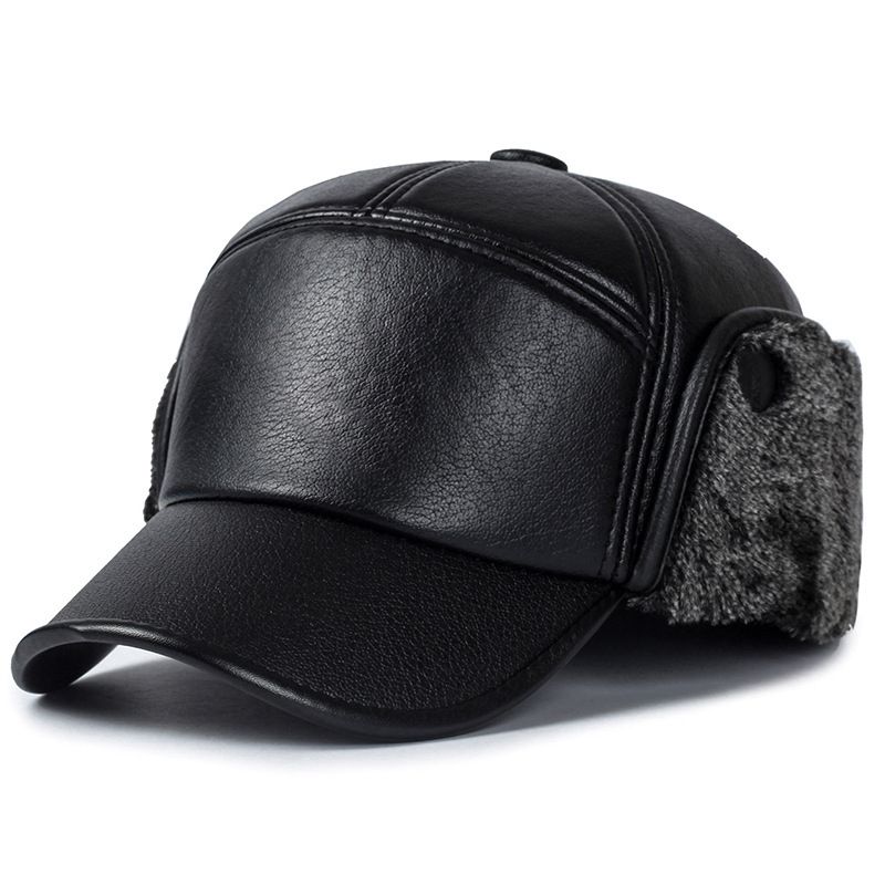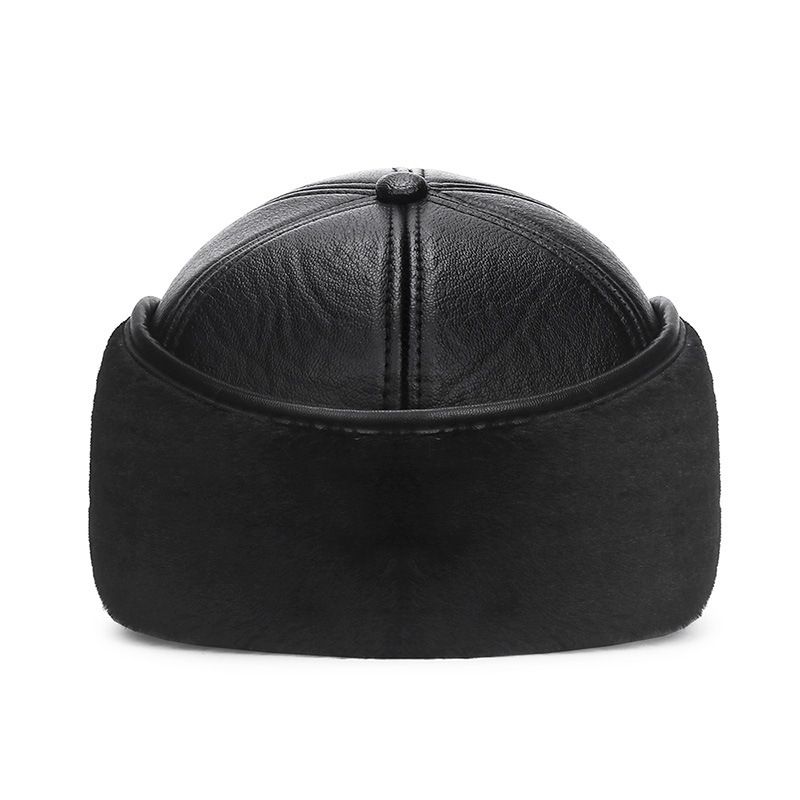 1X New Winter Bomber Hat Men Women Russian Black Leather Ushanka Cap With Ear Flaps Fur Warm Leather Brand Baseball Cap