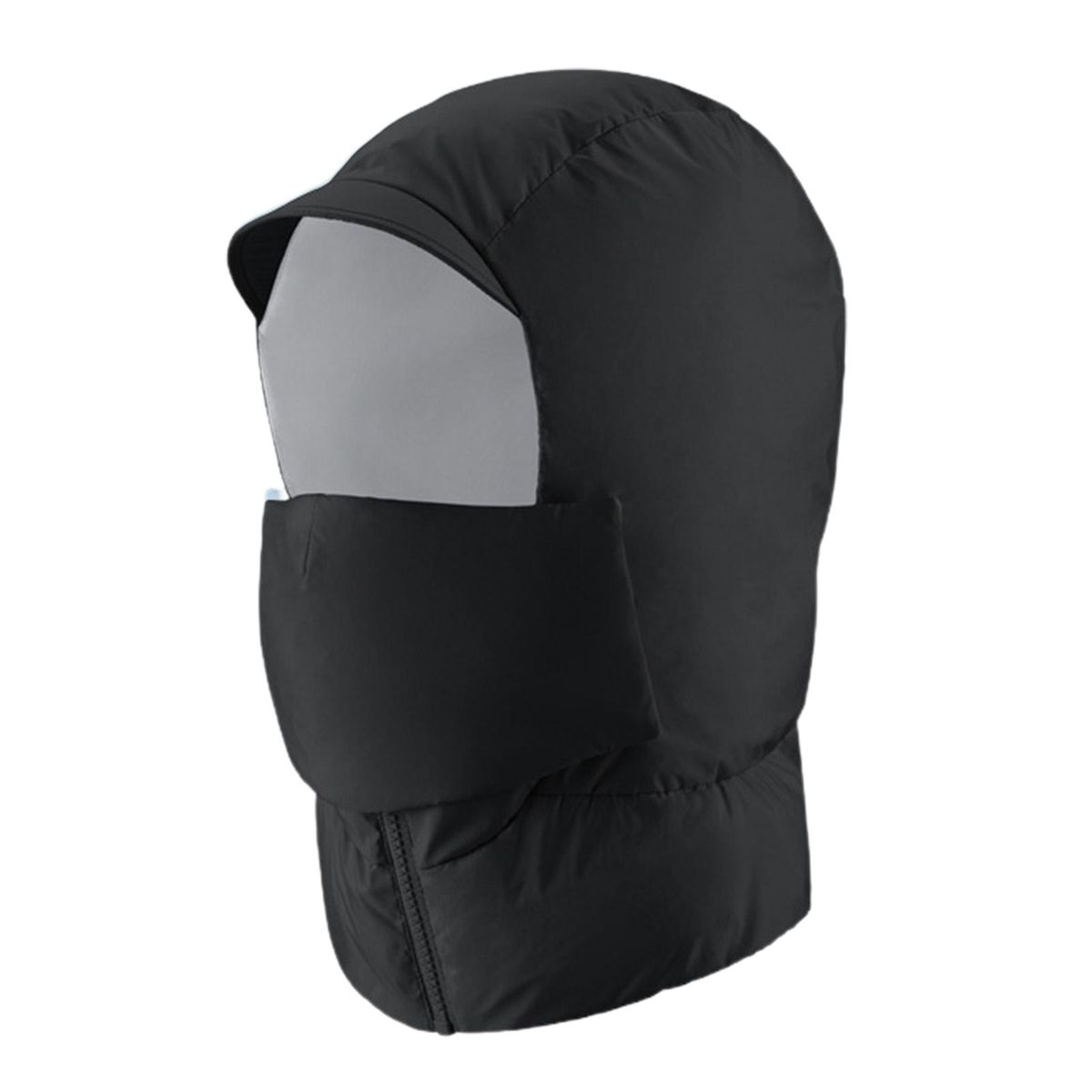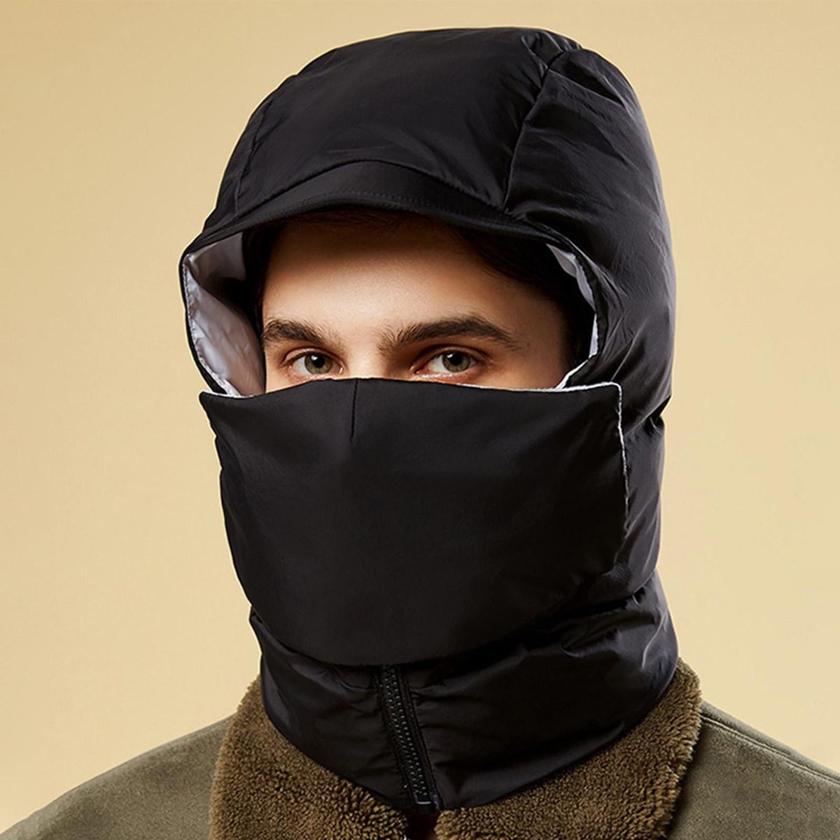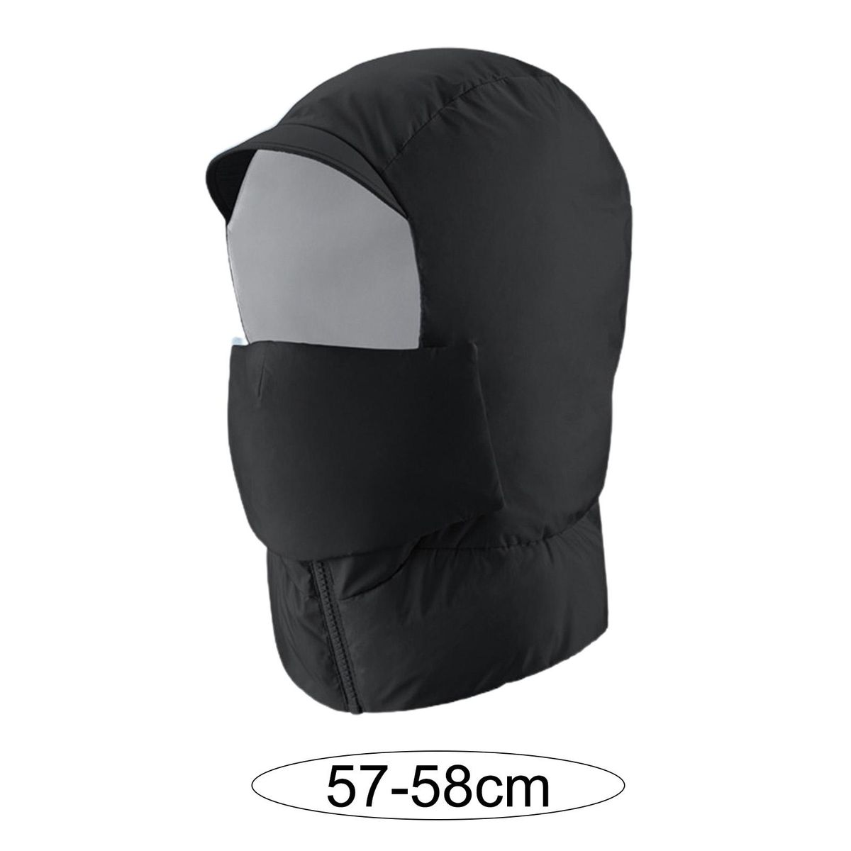 With a windproof cap tongue, removable visor, concealed buckle, windproof zipper and integrated bib design, this windproof down cotton cap can effectively prevent cold and keep warm.