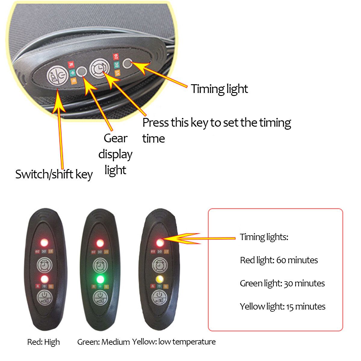 Adjustable Temperature: This car seat cushion provides adjustable temperature function. Under normal temperature, the high temperature file can about 65 degrees, the medium temperature file is about 55 degrees, and the low temperature is about 40 degrees.