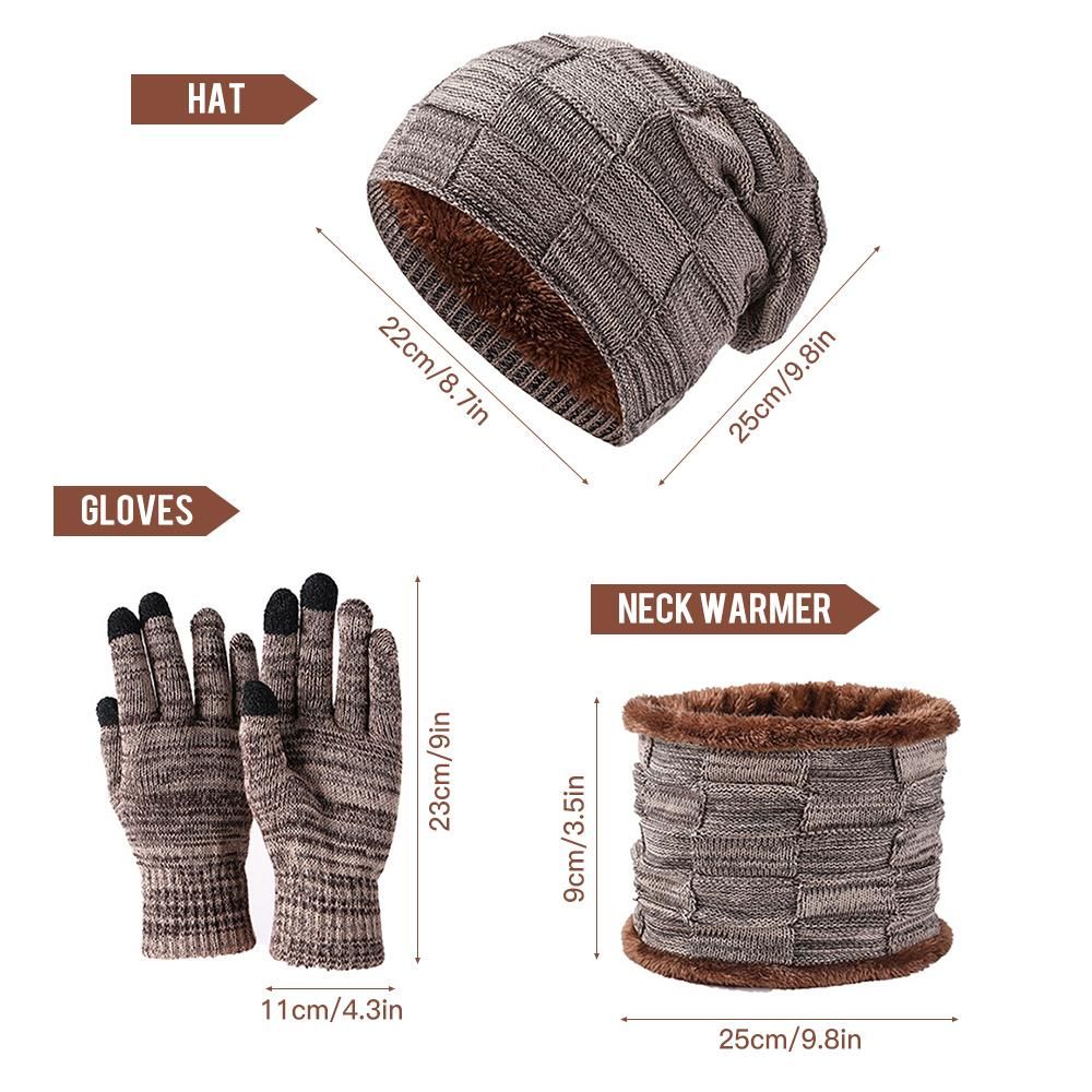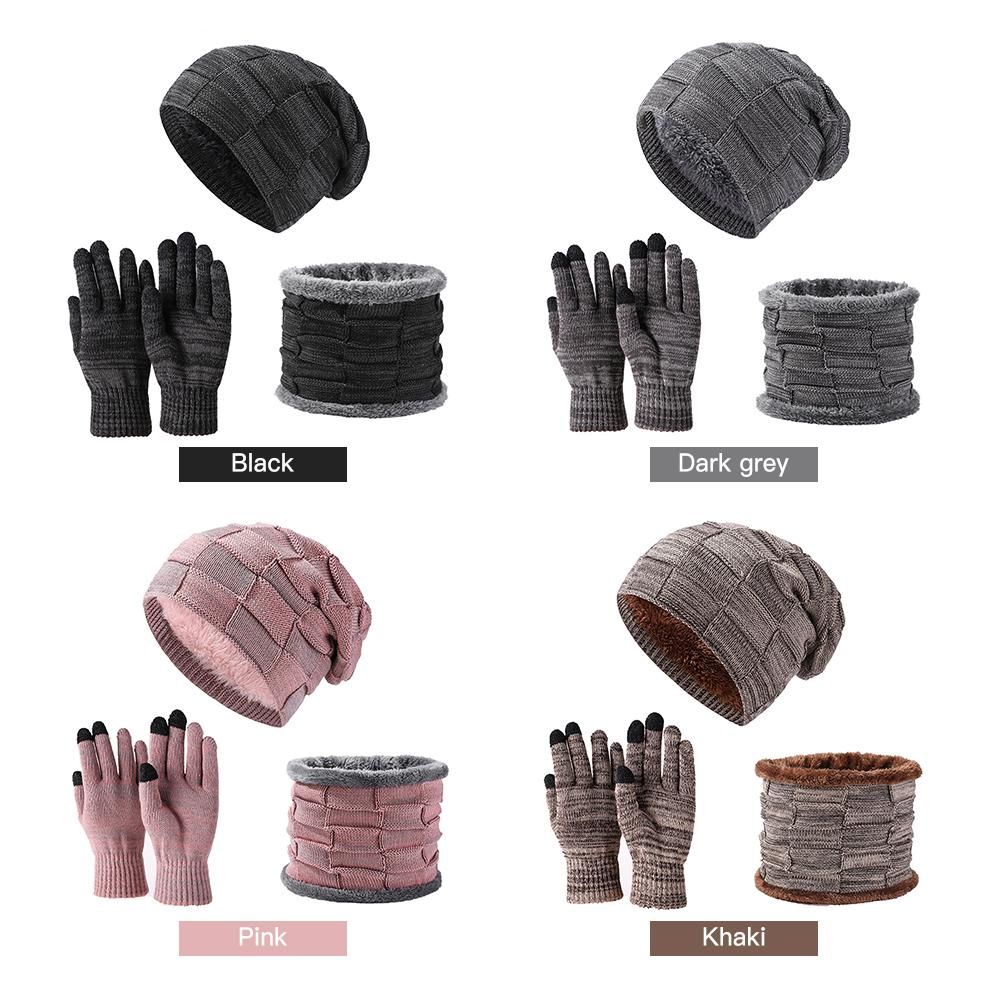 Buy Winter Knitted Beanie Hat and Scarf Gloves Set Thick Fleece Lined Warm Cap Neck Warmer Touchscreen Gloves for Men Women in Nigeria