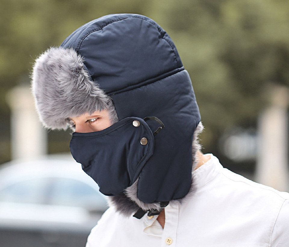 1X Winter Men's Aviator Hat Cold-proof Artificial Fur Russian Hat Thickened Ear Caps Windproof Biking Skiing Men's Winter Headwear