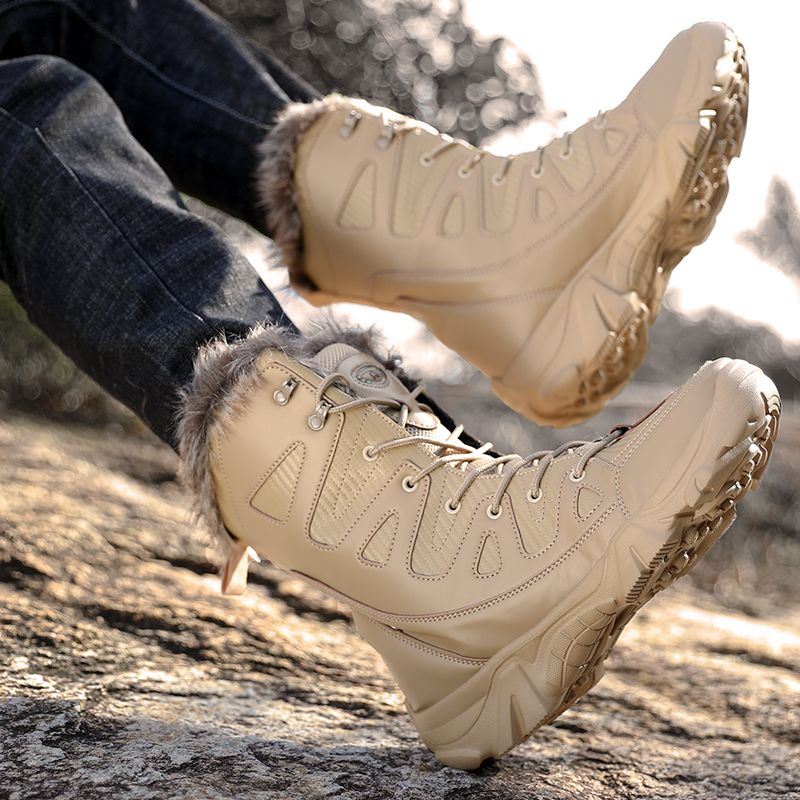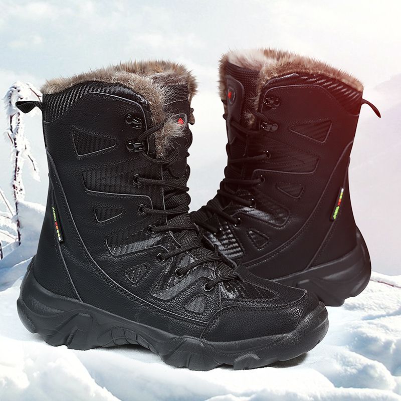 1X Winter Men's Boots Large Size Plush Warm Snow Boots Outdoor Fashionable Combat Boots Army Boots Classic Black Platform Men Shoes