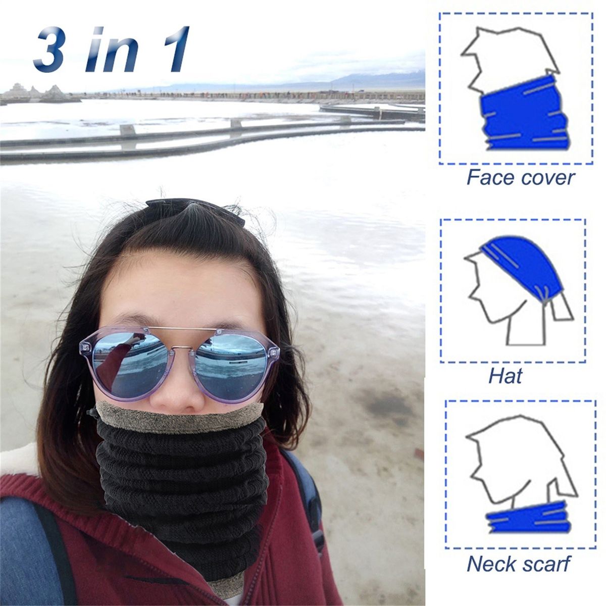 It can be used as a neck gaiter, face cover or a hat according to your need.