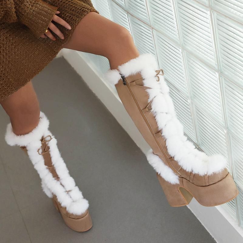 1X Winter Shoes Woman Zipper Casual Knee Boots