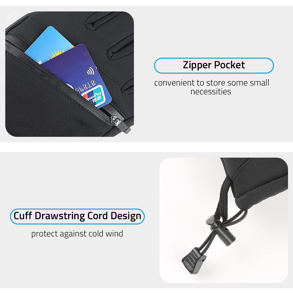 Zipper pocket at the back of gloves, convenient to store some small necessities like keys, cards.