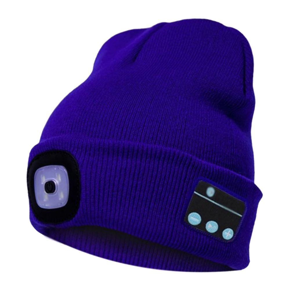 1X Winter Warm Music Hat Wireless Smart Headphone Bluetooth LED Hat Uni Winter Built-in Mic Headset with Flashlight