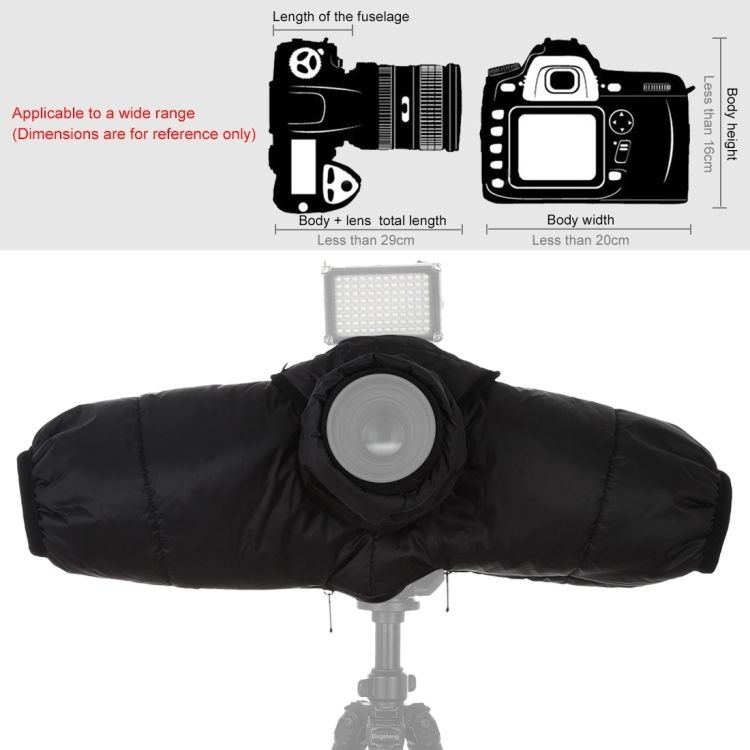 6. This rain cover fits for Canon / Nikon / Sony, and Other DSLR Camera.