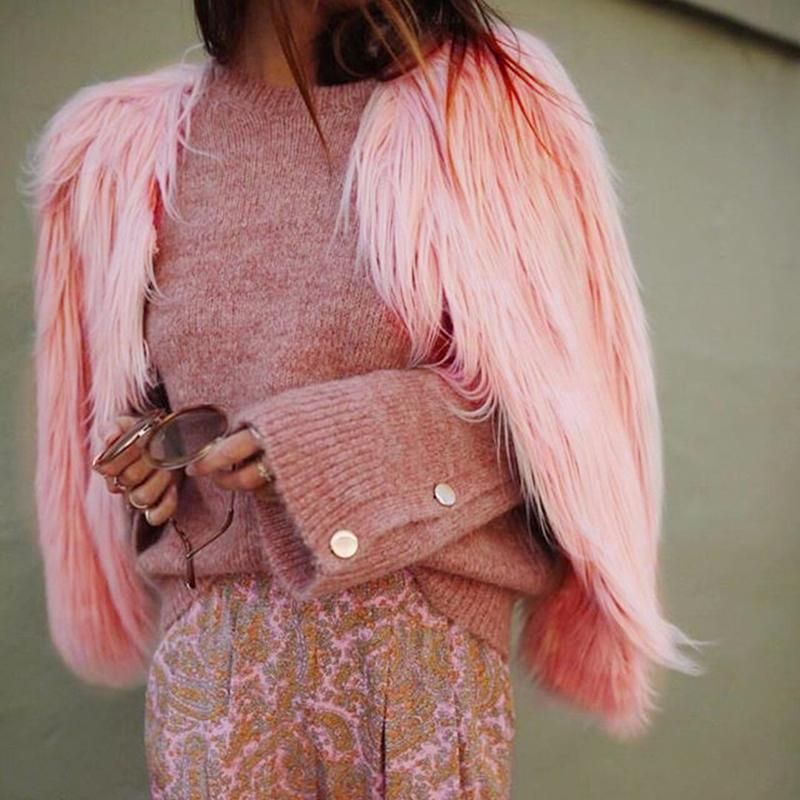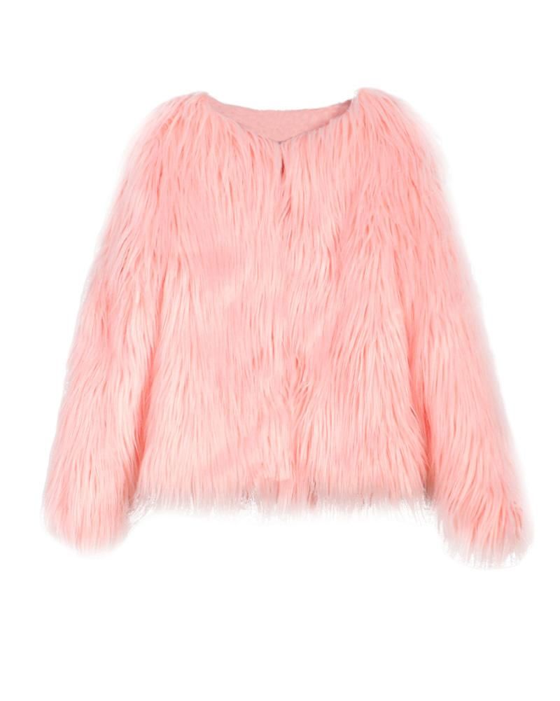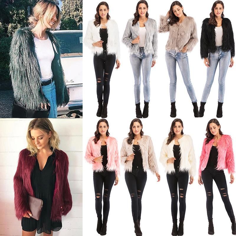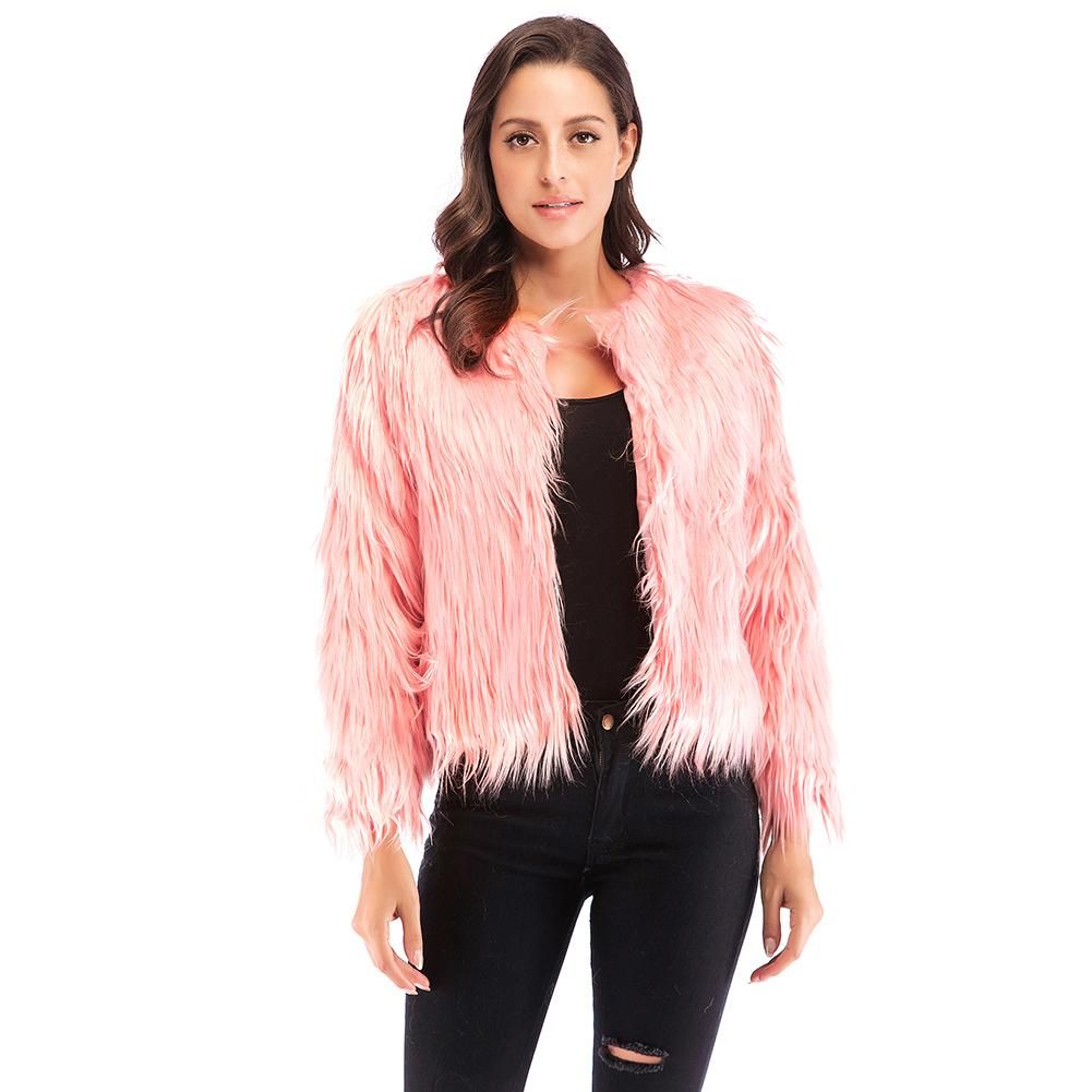 Buy Winter Women Coat Solid Color Long Sleeve Fluffy Outerwear Short Jacket Hairy Warm Overcoat in Nigeria