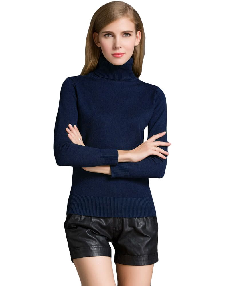 Buy Winter Women Sweater Knitwear Turtle Neck Long Sleeves-dark Blue in Nigeria