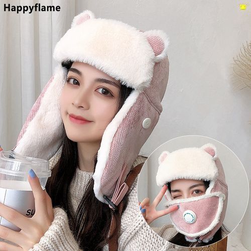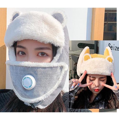 1X Winter Women Warm Thick Breathable er Hat Cute Cat Ears Mask Bonnet Girl Outdoor Russia Corduroy Face Neck Earflap Snow Caps