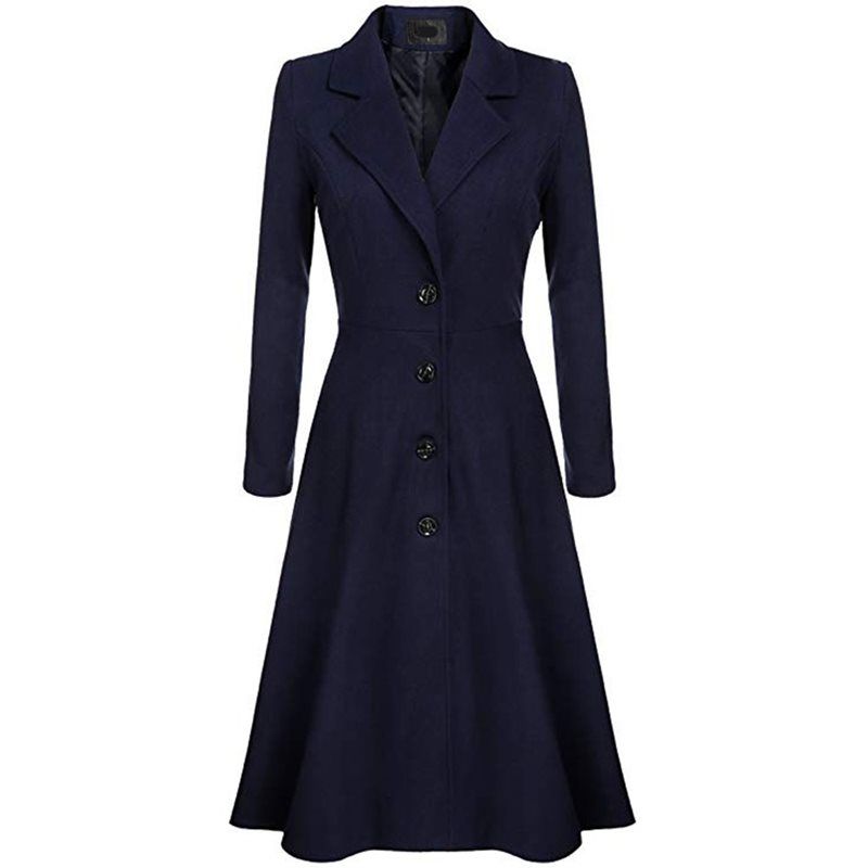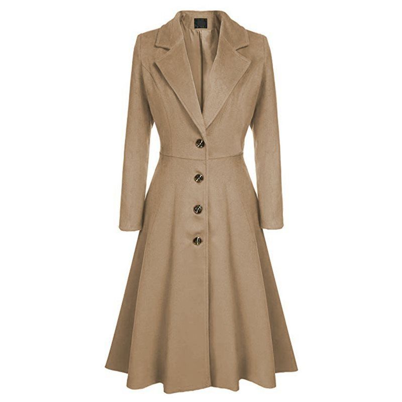 Manteaux Trench longs en laine pour femmes, chauds et decontractes pour le bureau, Slim, revers plie, bouton, automne retro
