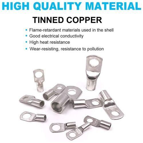 Tinned copper,High Electrolytic Grade Copper Terminals.Wire can be crimped or soldered to copper lugs, more safe.