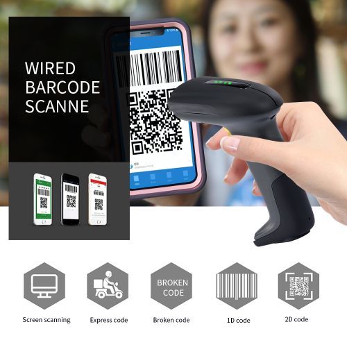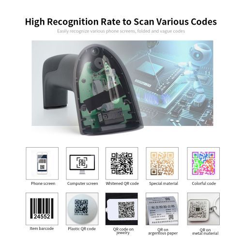 The wired barcode scanner can read all international standard 1D and 2D code with advanced reading performance of the decoding chip. and easy one-button operation greatly increases work efficiency while avoiding a series of failures due to complex setup steps.