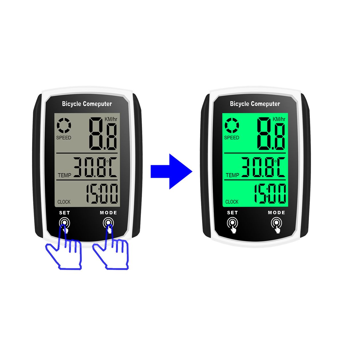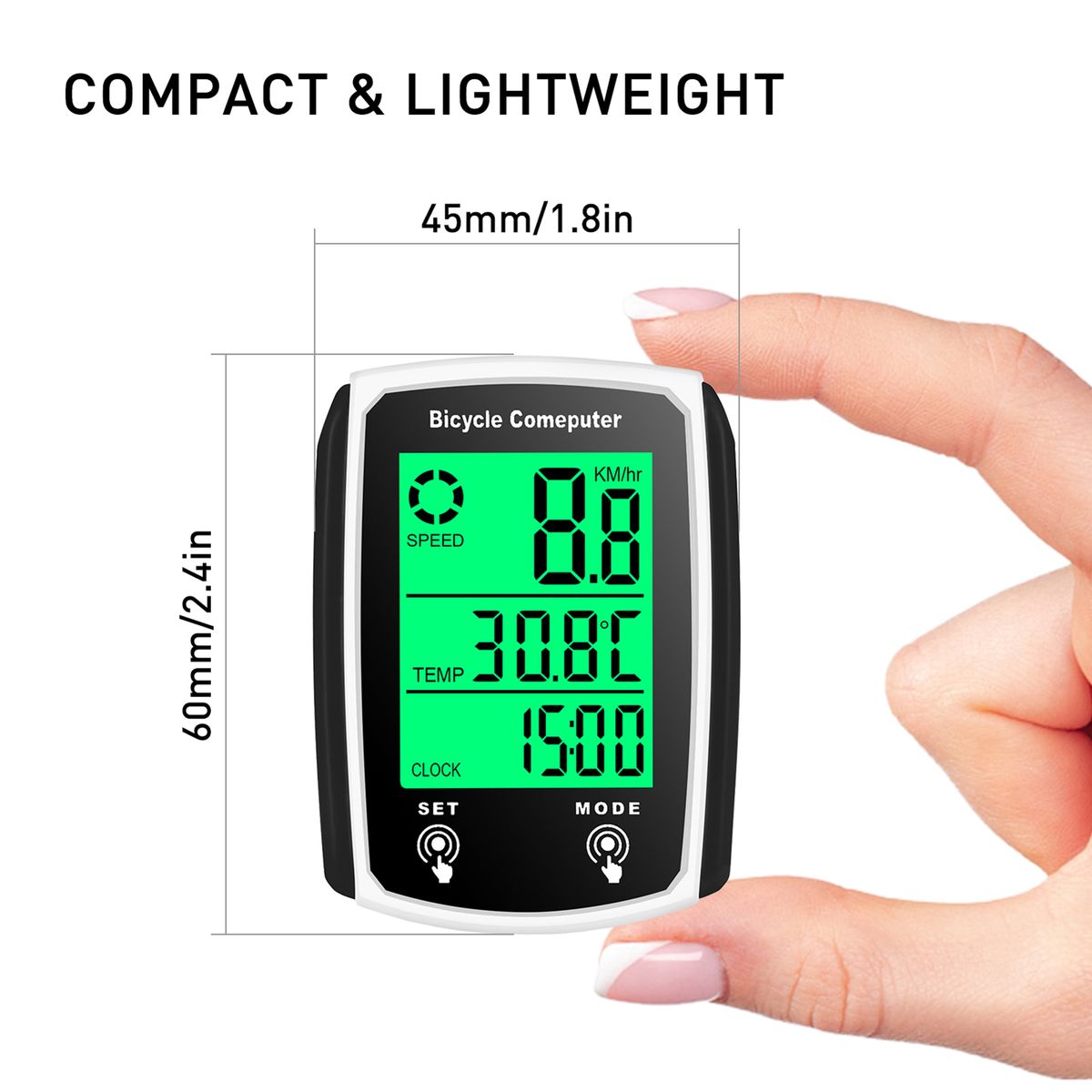 Large LCD display with backlight allows you to read your data clearly during day or night riding.