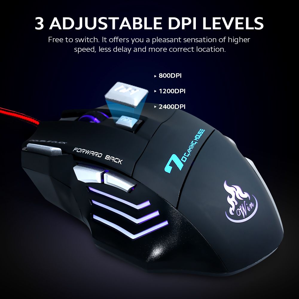 This Wired Mouse offers 3 adjustable DPI levels --- 800, 1200, 2400, offering you a pleasant sensation of higher speed, less delay and more correct location. And it generates 5-color breathing light once you plug it into USB port.