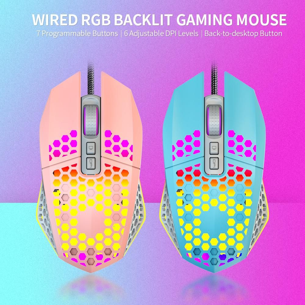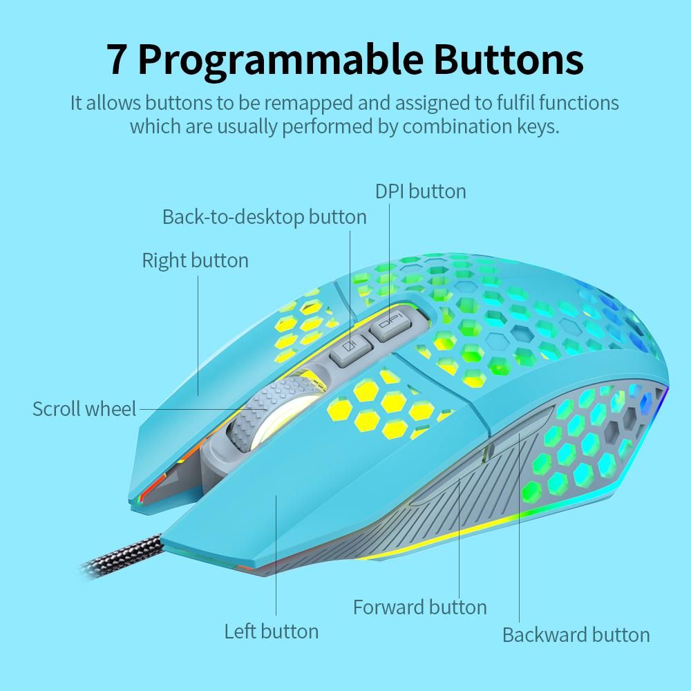 Buy Wired RGB Backlit 8000 DPI Gaming Mouse 7 Programmable Buttons 6 Adjustable DPI Levels Back-to-desktop Button, Blue in Nigeria