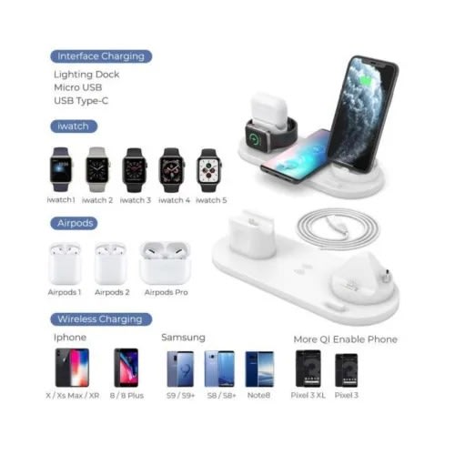 Buy Wireless 6 In 1 Multi Function Charging Station - White in Nigeria