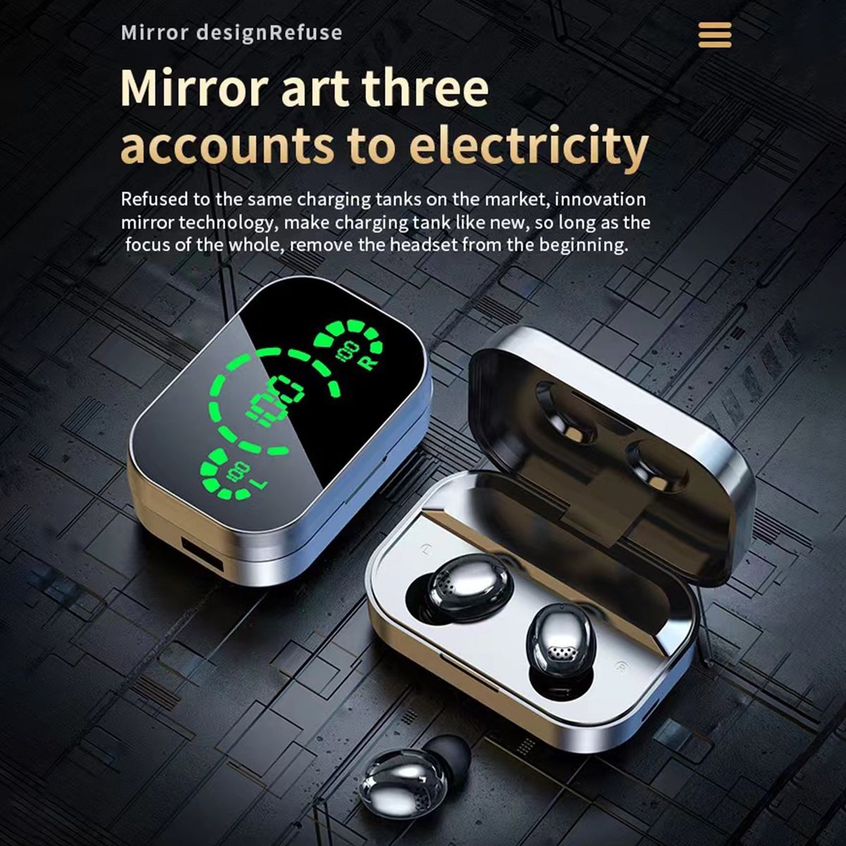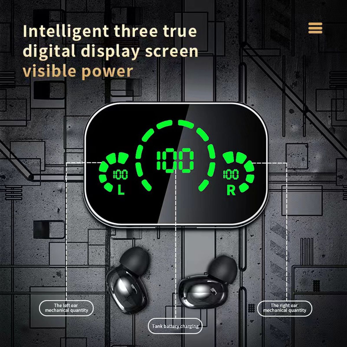 * AI light intelligent digital display, shows clearly remaining power of charging case and left / right earphones. The screen can also be used as a mirror for makeup fix.