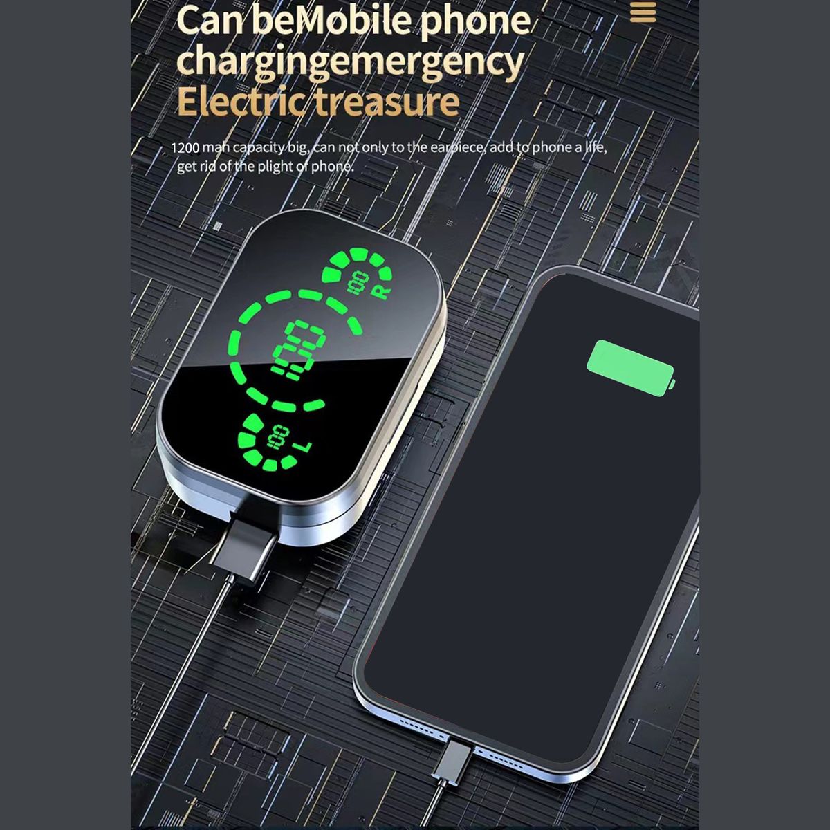 1200mAh large capacity charging case, offers long-lasting battery life. Meanwhile, it can work to charge a mobile phone for emergency.
