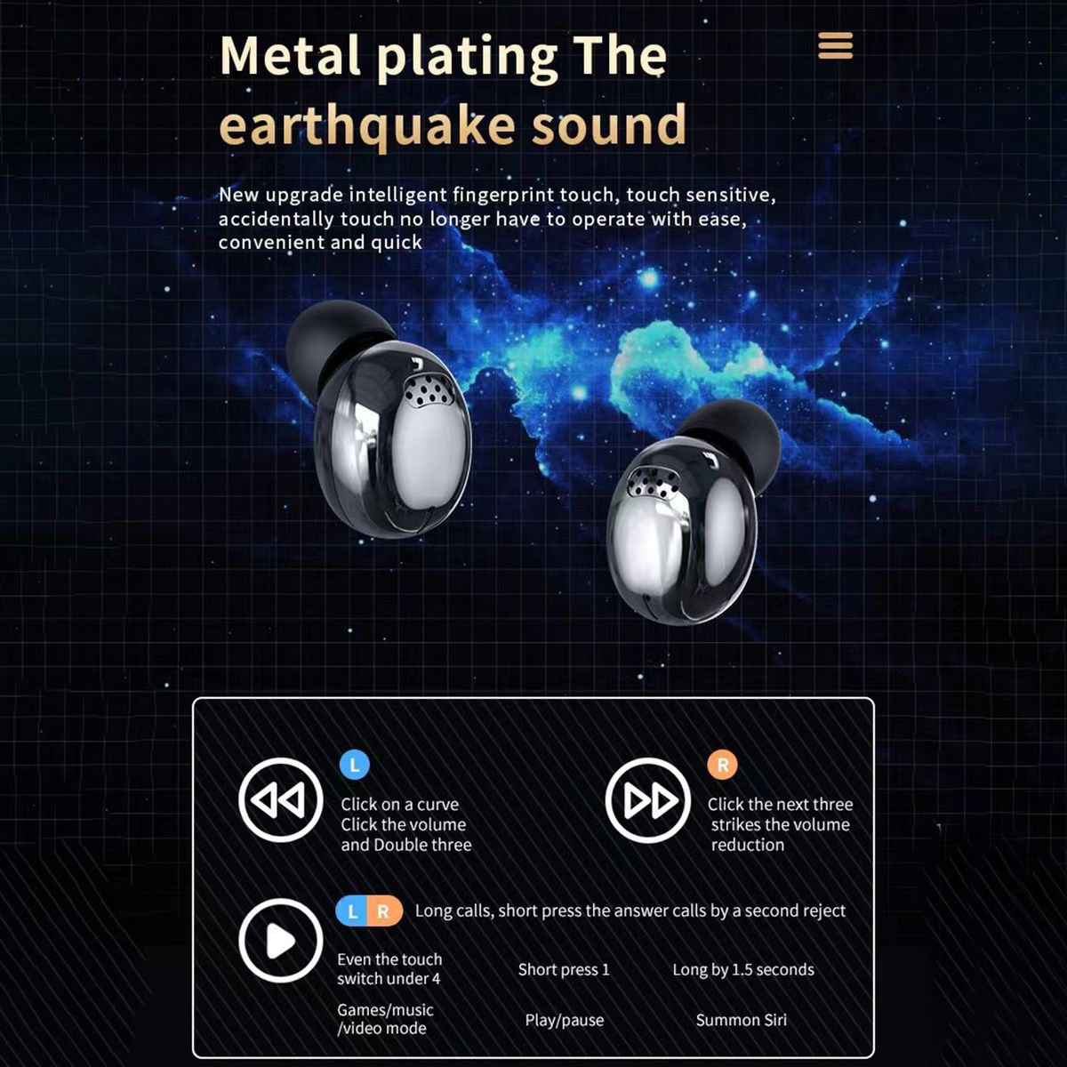 By fingertip-touch control, you can freely switch song, adjust volume, answer / reject phone call, waken voice assistant, etc.