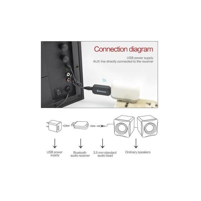 -Let ordinary speakers instantly become wireless Bluetooth stereo audio music speakers -Can be paired to any bluetooth enabled devices, such as mobile phone, laptops, speaker and Bluetooth audio transmitter. -Make music in the audio equipment play by wireless