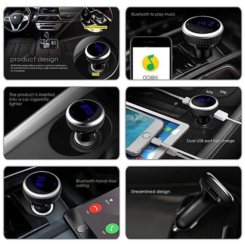 Easy to use: Simply plug into Cigarettee lighterr socket. Control directly as an FM transmitter. Volume, frequency and song control through turn knob, Bluetooth hands-free calling, charging for your phone.