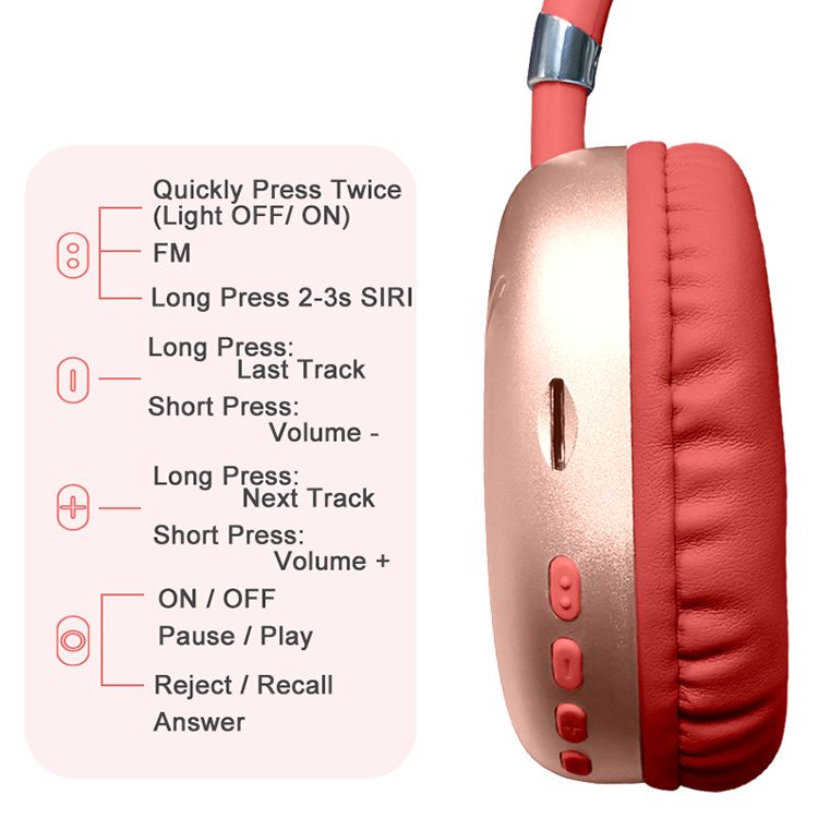 4. Wide range of functionalities: These headphones support stereo Bluetooth music, TF card playback, FM radio, intelligent voice assistant, and RGB colorful lights.