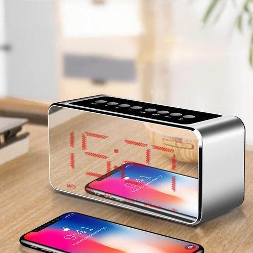 Wireless Bluetooth LED Mirror Clock Speaker Heavy Bass TF Card FM Radio Subwoofer Alarm Clock