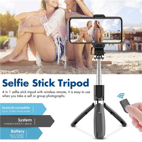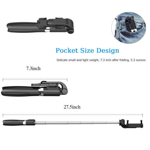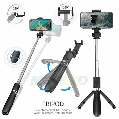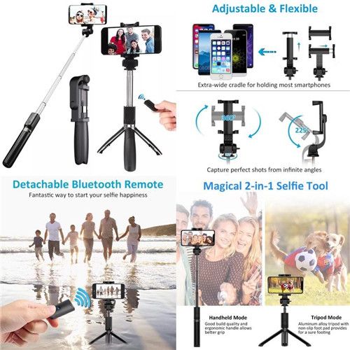 - 1. 2 in 1 Design - A bluetooth selfie stick also as a tripod with remote control shutter.