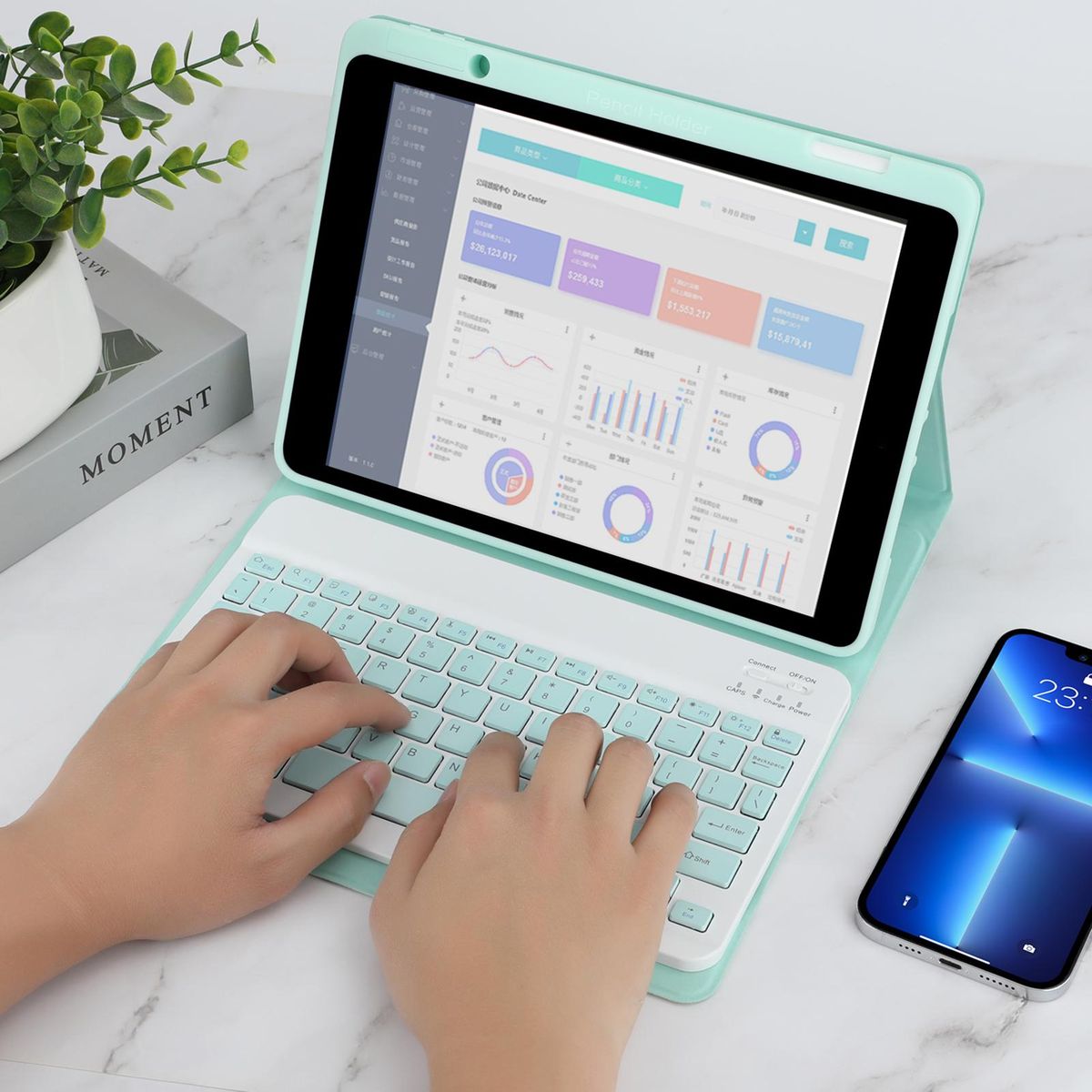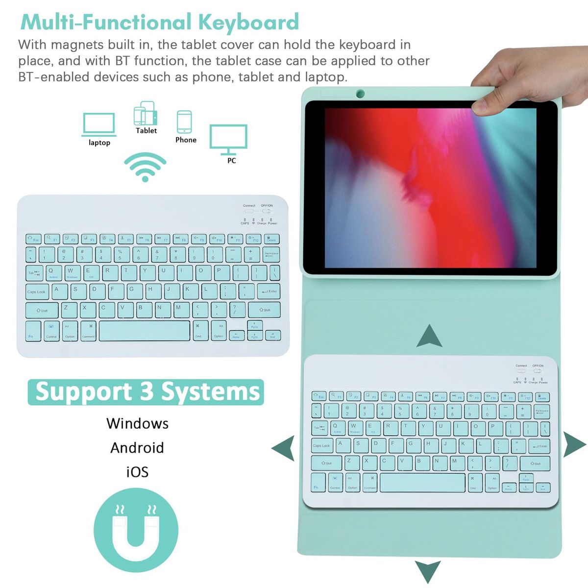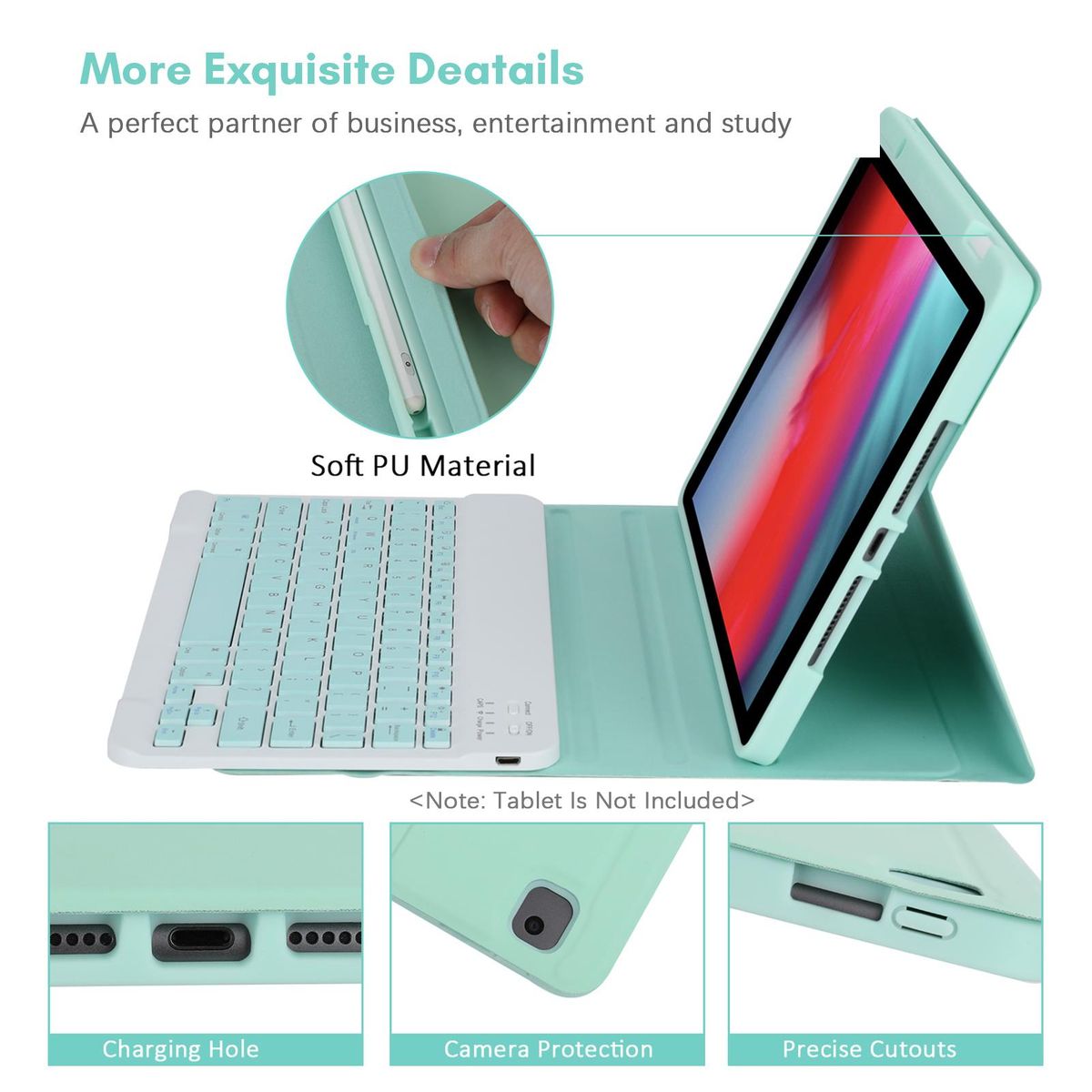 Buy Wireless BT Keyboard USB Keypad with PU Leather Protecting Case for Tablet Compatible with iPad Air3 10.5in/ipad Pro 10.5in(2017)/iPad 7 10.2in(2019)/ipad 8 10.2in(2019)/iPad 9 10.2in(2020) in Nigeria