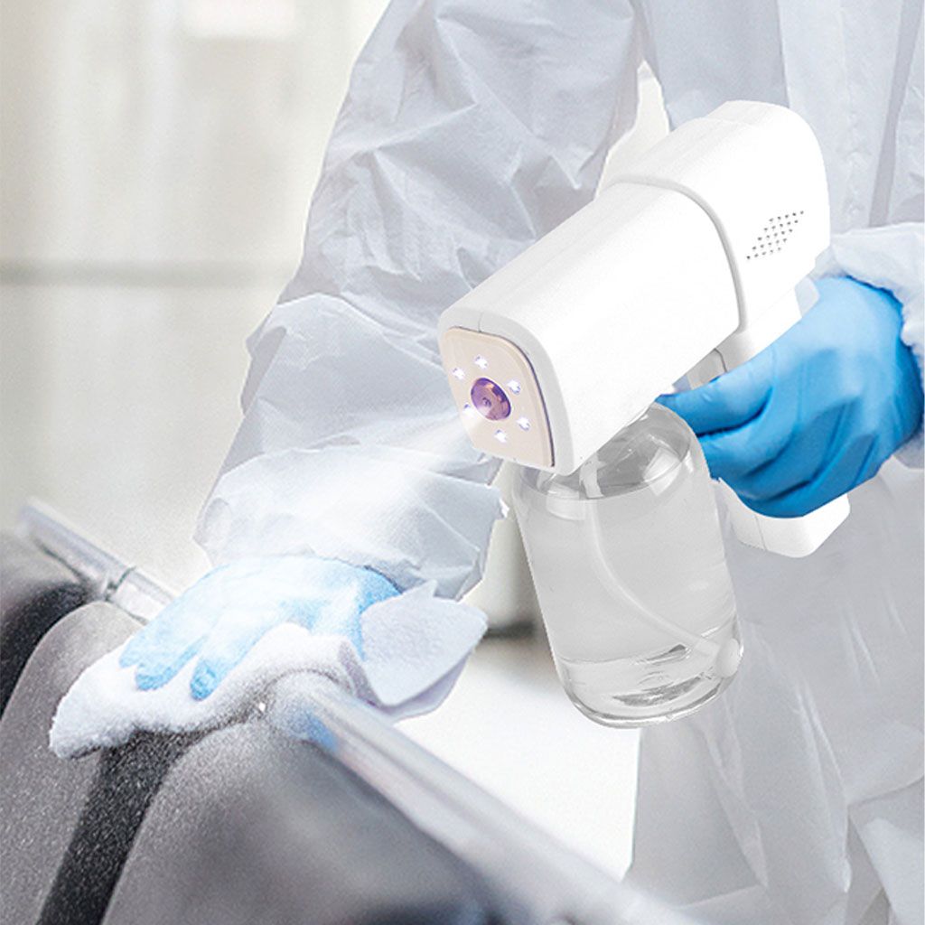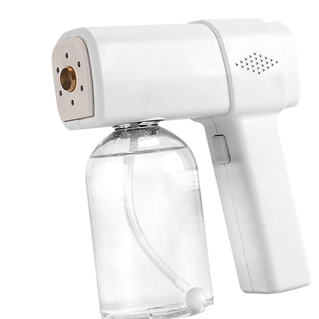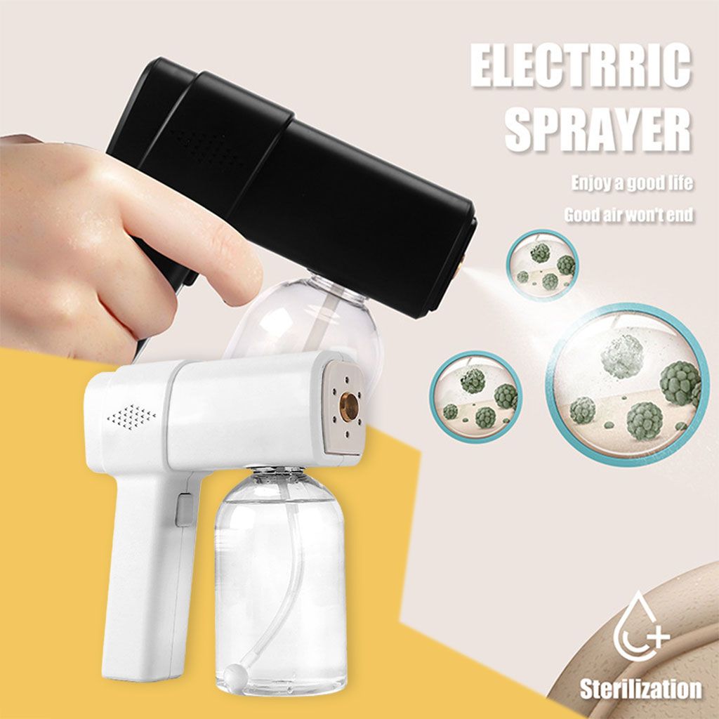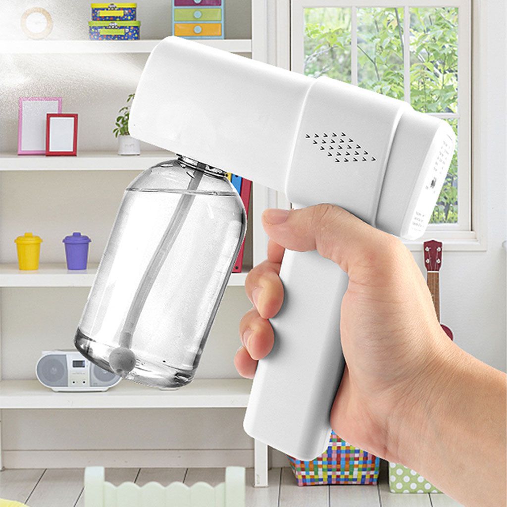200ML CAPACITY: capacity 200ml water bottle, manual handle, small and portable.SAFE AND EASY TO USE: USB Rechargeable cordless model battery powered wireless nano electric gun, adopted a strong blue light.: This sprayer is equipped with a 1800mAh detachable battery , which can be used continuously for long time.WIDELY USED: The sprayer can be used for home , room , office , public area , and clothing disinfection.SMALL AND PORTABLE: Compact body allows you to feel comfortable with the design of the handle, easy to carry, can be used in homes and beauty salons.