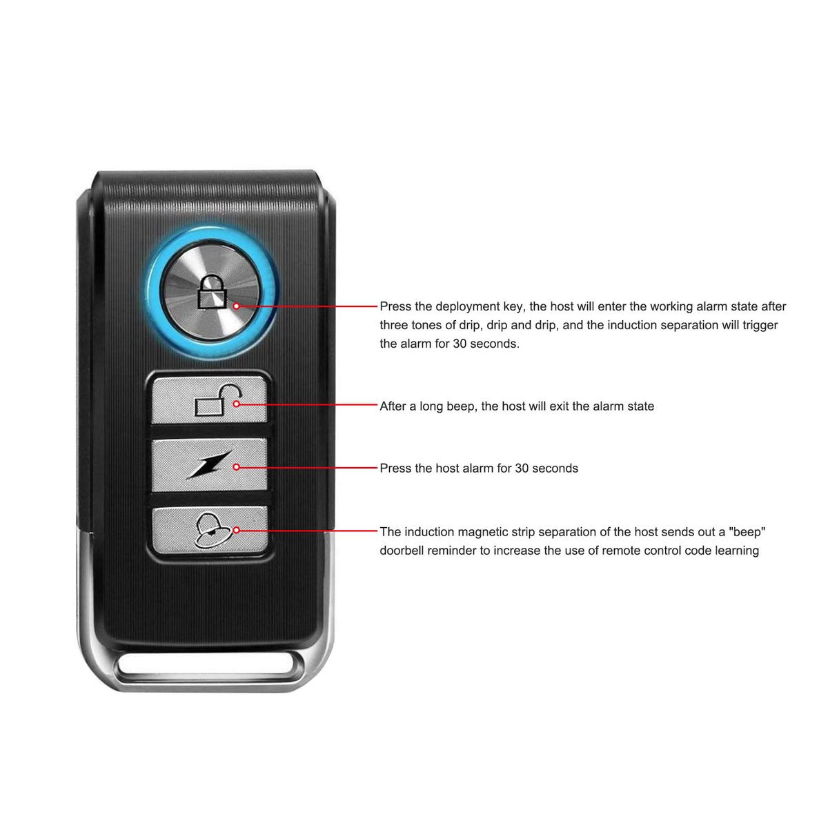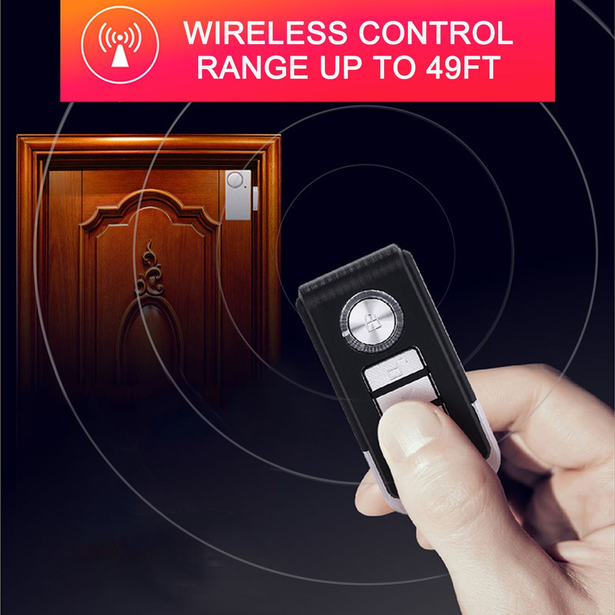 Door alarms with remote, Arm/Disarm/Panic/Doorbell 4 modes easily controlled by remote.