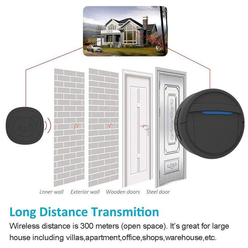 Memory function: After power off, the set ringtone can be locked by memory. After power on, it still rings according to the set ringtone, and the distance can reach 150-300 meters in an open and barrier-free environment; remote control, stable signal, no mutual interference