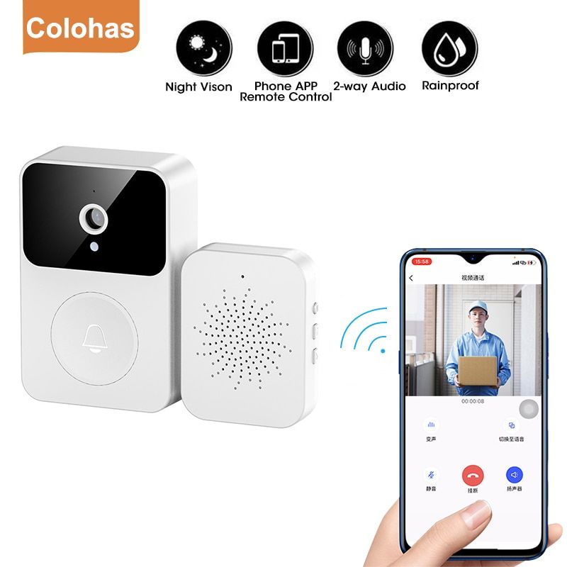 Wireless Doorbell Camera WiFi Outdoor HD Door Bell 720P IR Night Vision Intercom Voice Change For Home Monitor Door Phone Intercom For Apartments Security Feature: 1. Super long standby time,built-in 2. Support remote video calling 3. Support voice change, women's voices into men's voices 4. Convenient , can be glued, can be perforated 5. Support up to 10 family members at the same time 6. built-in 850N night vision lights, night can also see very clearly Specification: Color:White Battery capacity: 800mA Doorbell size: 80*53*22cm Dingtone size: 55*42*25cm Charging time: about 1.5 hours Usage time: about 6 months Package: 1*Doorbell unit 1*Indoor ding-dong unit 1*Auxiliary sticker 1*Small screws 1*Manual instruction