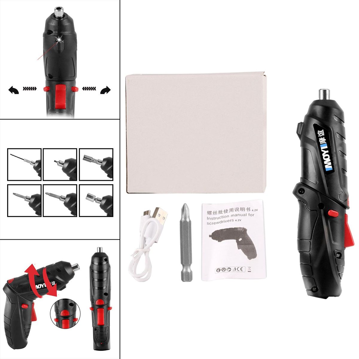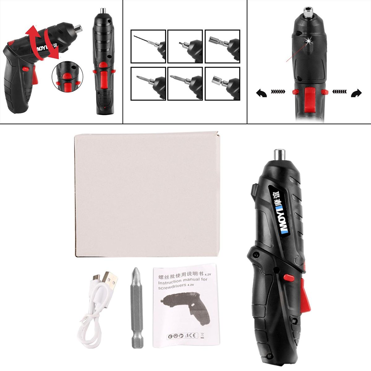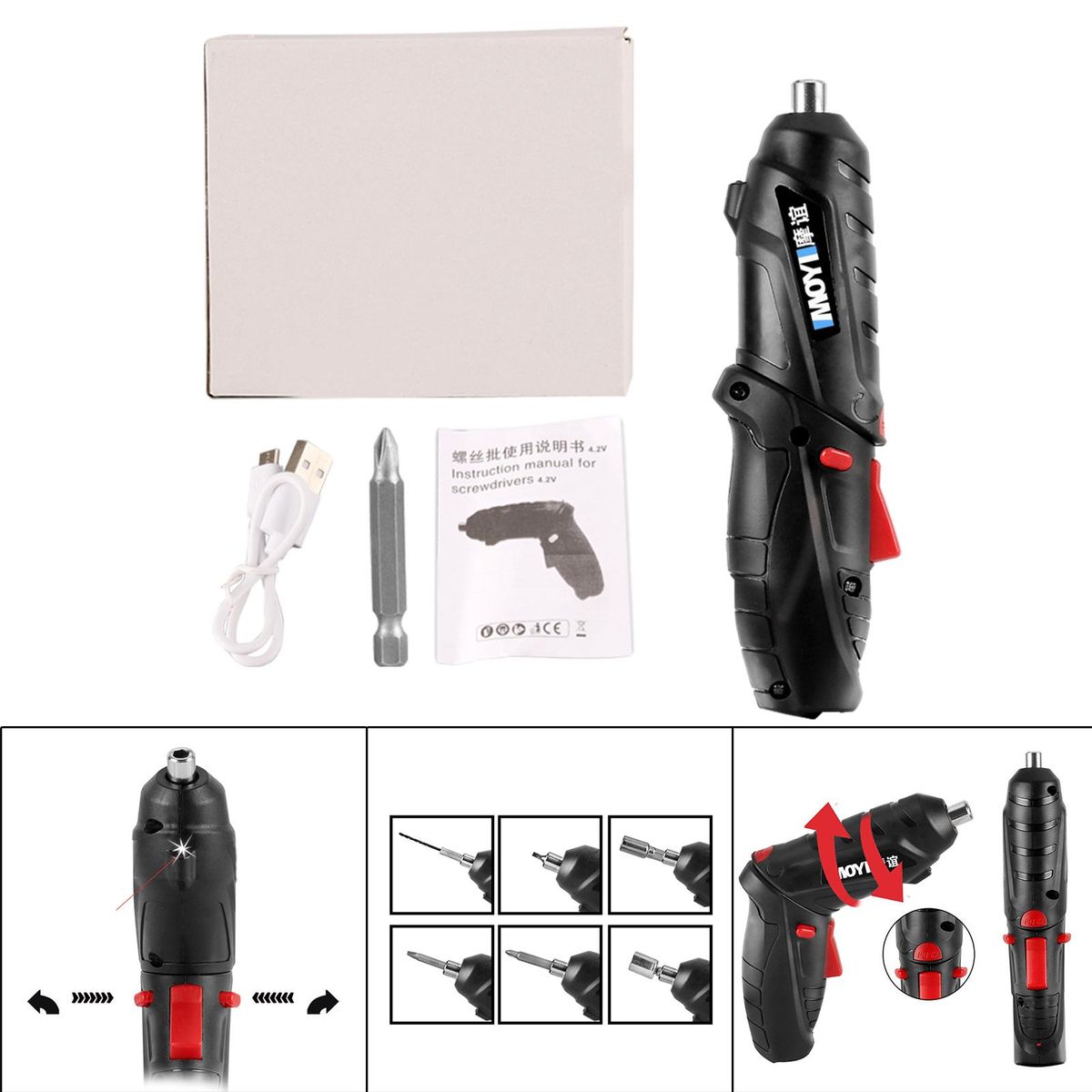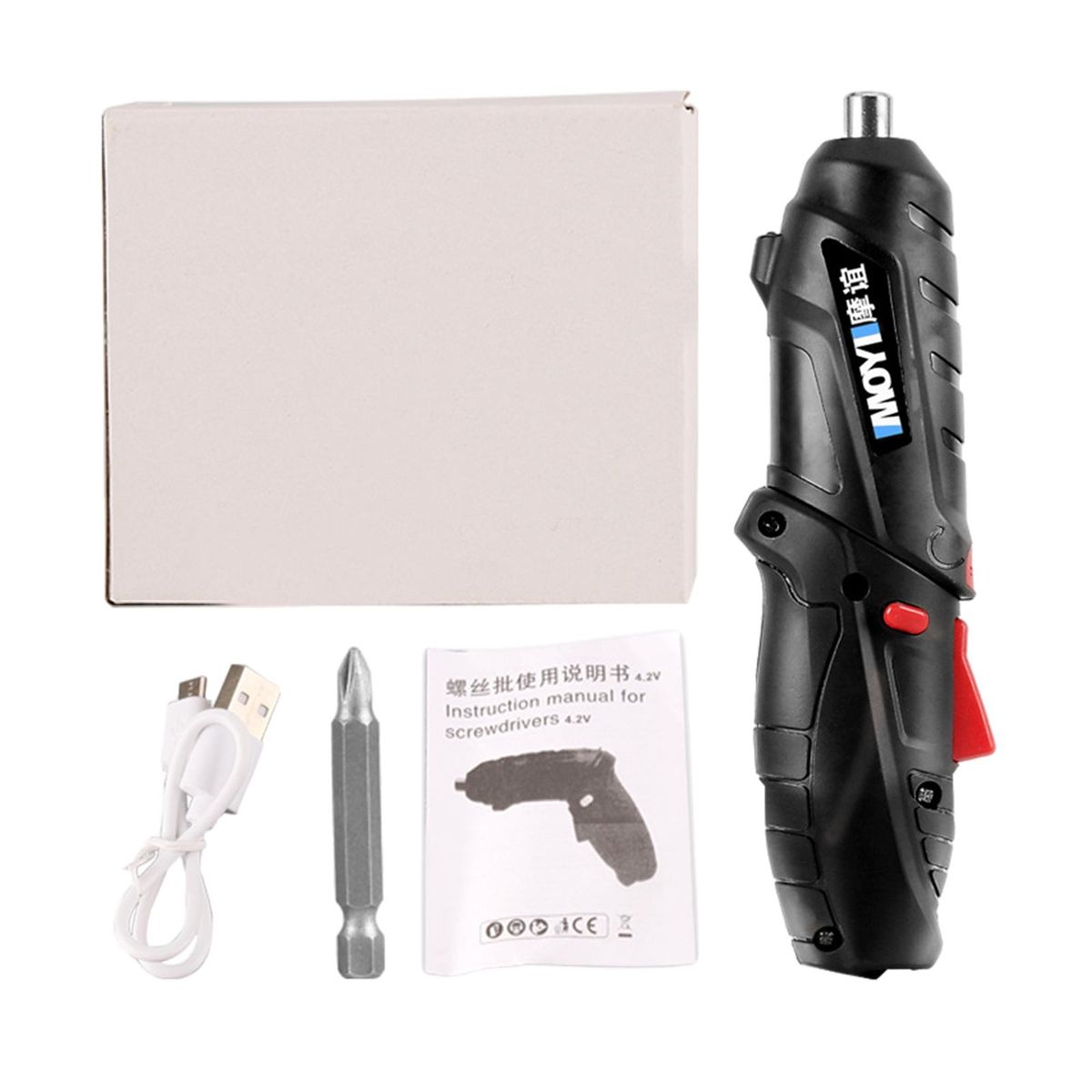1x Box1x Charging Cable1x Manual1x Electric Screwdriver1x Drill Bit