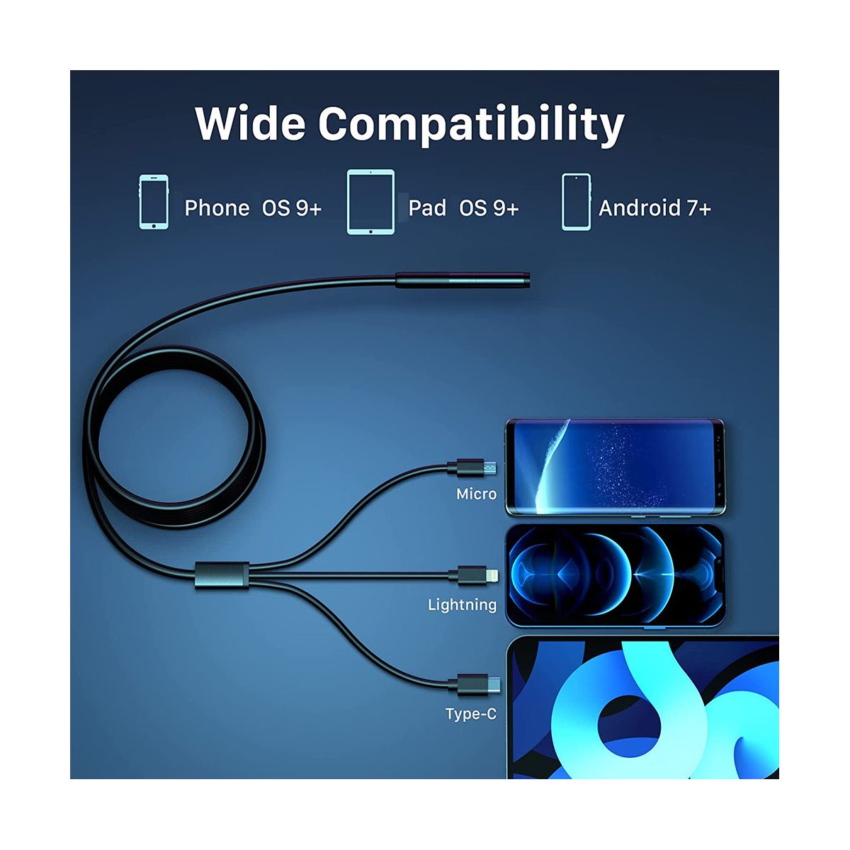 [High Compatibility] Comes with Type-C, -type, For interface 3 In 1 adapter power supply interface, compatible with 99% of mobile devices on the market, Wi-Fi industrial borescope can be easily powered.