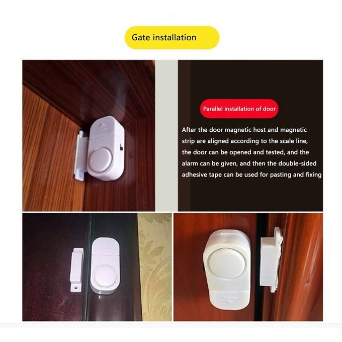 Des ription: The alarm gives out lear and loud sound when an intruder breaks in. Wireless magneti r swit h. Freely swit h ontrol. Emit r loud sound on e burglar gets in. Suitable for window or door warning. Su ly batteries for free.