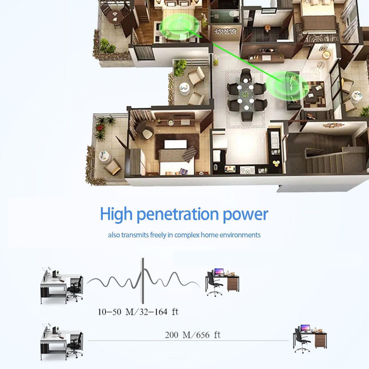 Features: Bi-Directional5.8G Dual-Band Transmission, Infrared Remote Control Function, Heat Dissipation